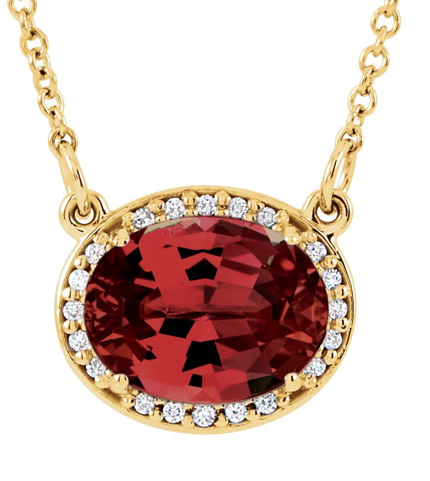 14K Yellow Mozambique Garnet & .05 CTW Diamond 16.5 inch Necklace