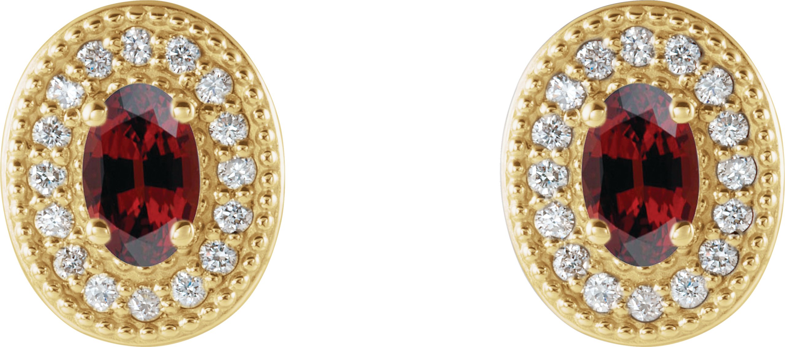 14K Yellow Mozambique Garnet & 1/8 CTW Diamond Halo Style Earrings