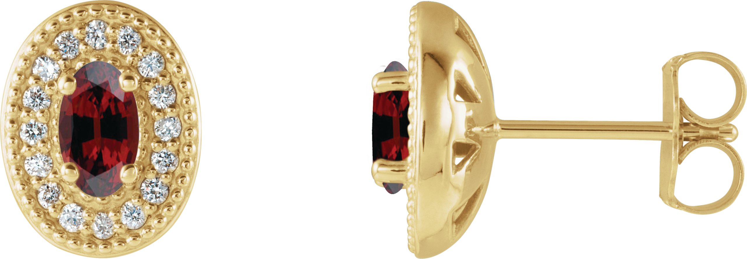 Description: Genuine Garnet And 1/8 Ctw Diamond Earrings With Backs