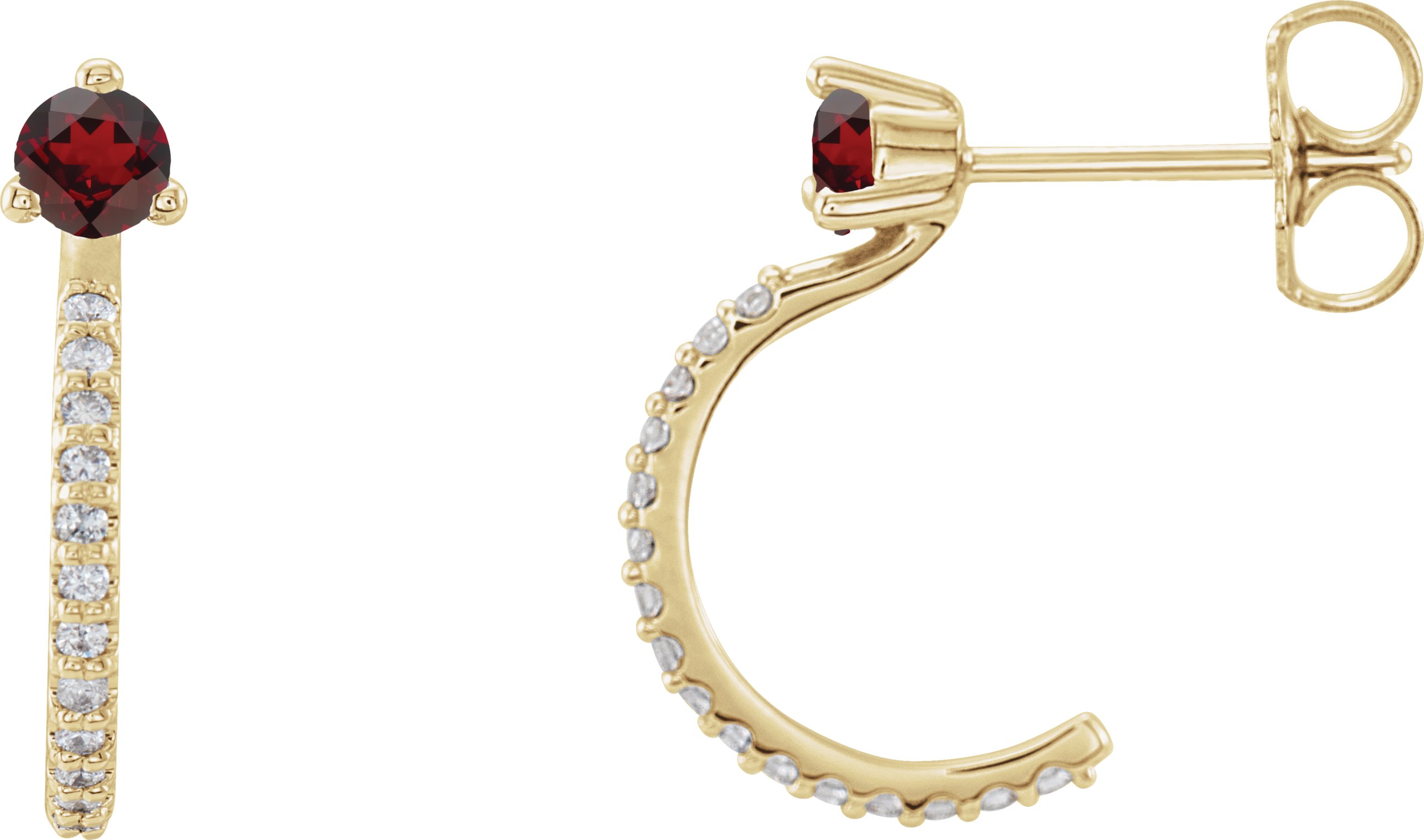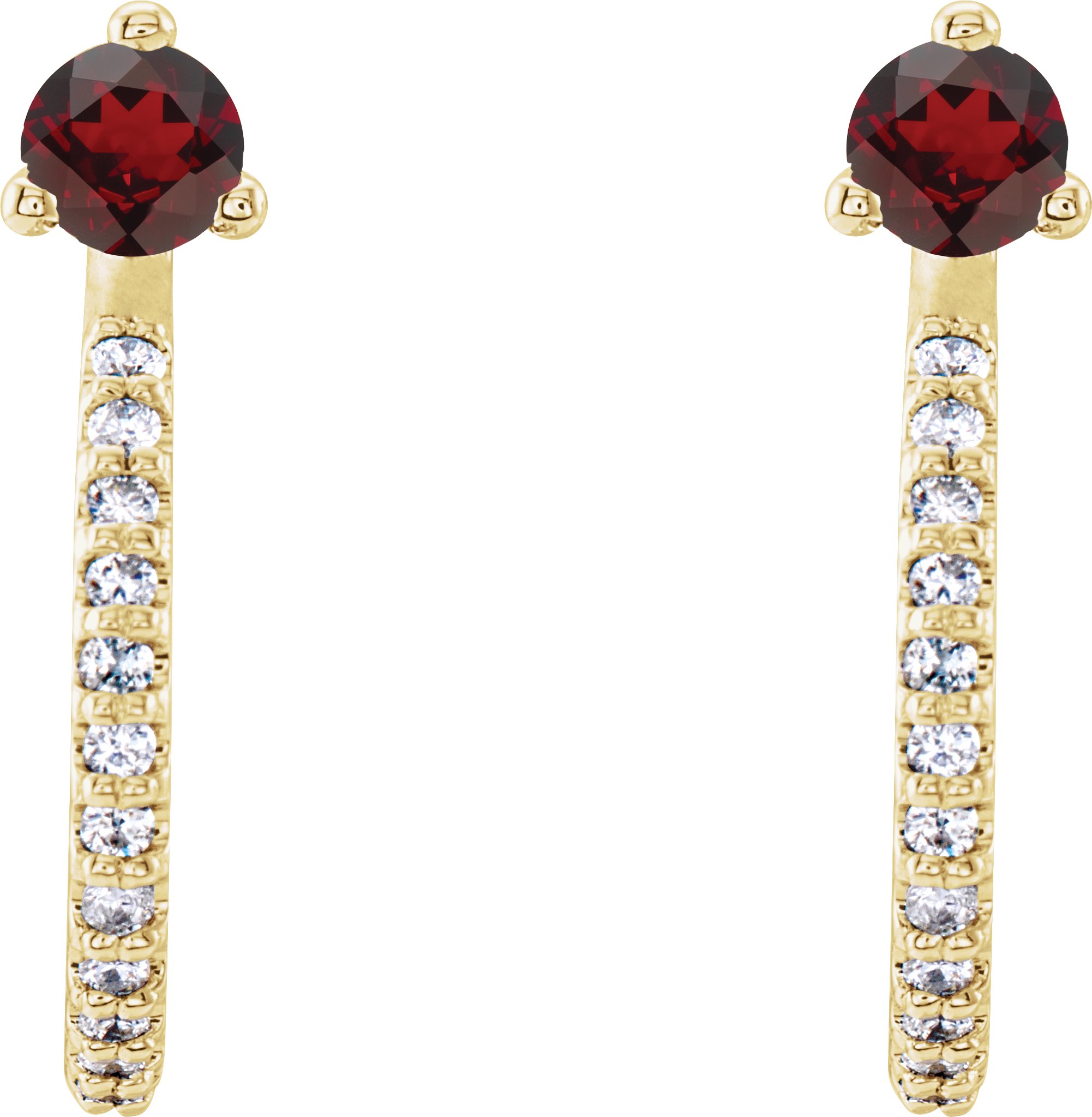 14K Yellow Mozambique Garnet and .17 CTW Diamond Hoop Earrings
