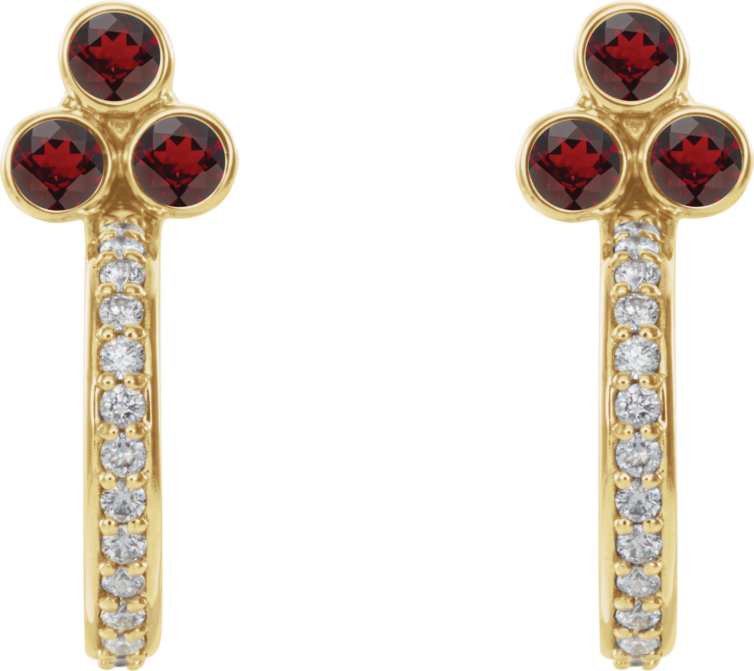 14K Yellow Mozambique Garnet & 1/4 CTW Diamond J Hoop Earrings