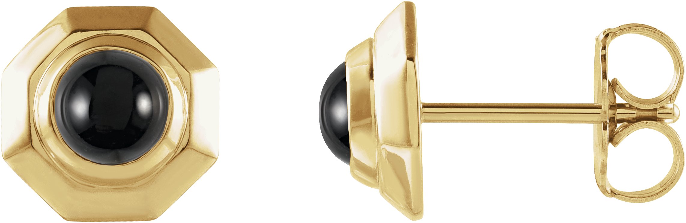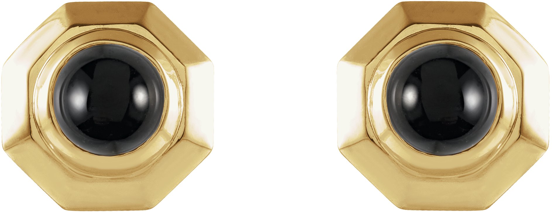 14K Yellow Natural Black Onyx Geometric Cabochon Earrings Ref 17399449