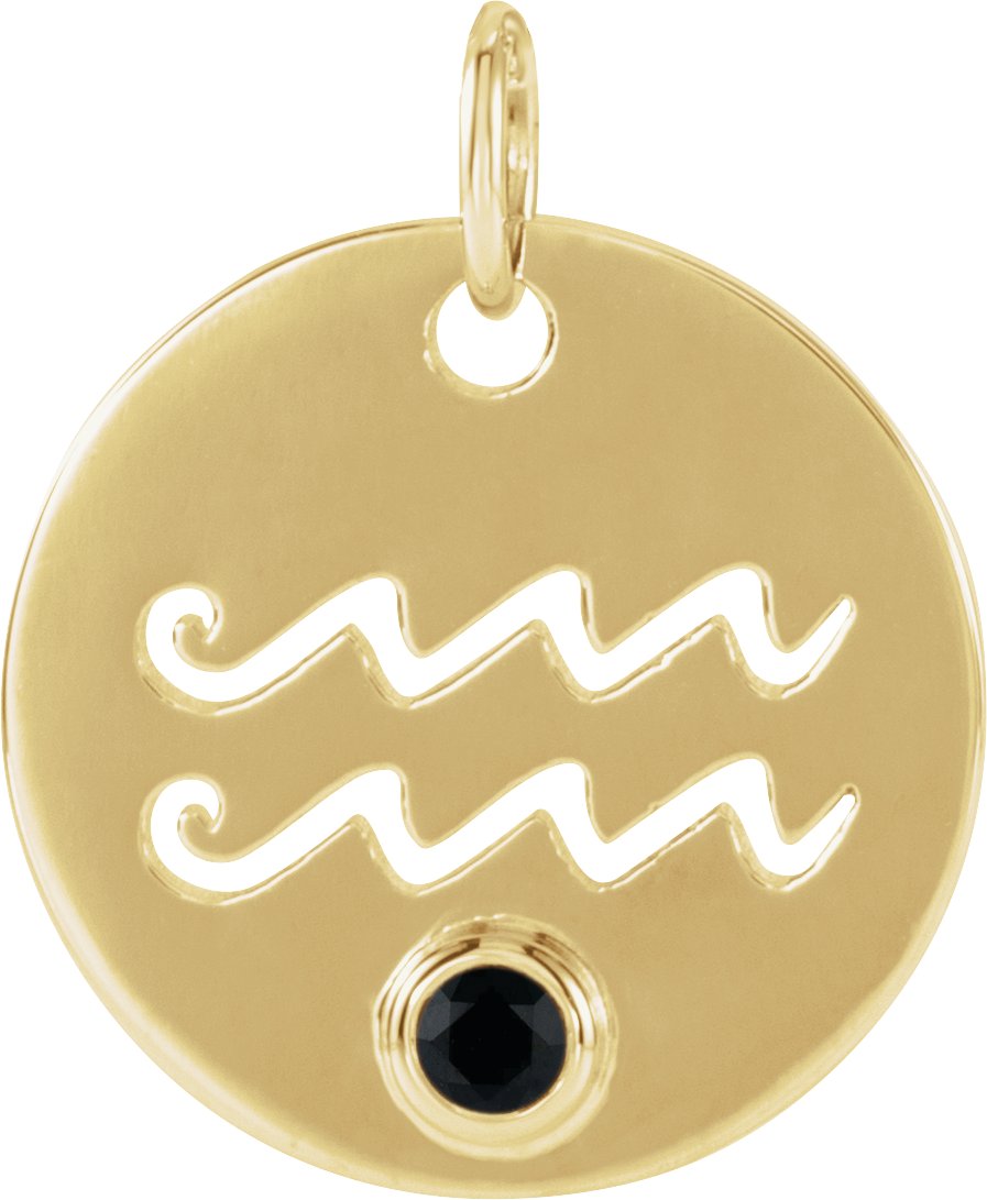14K Yellow Natural Black Spinel Aquarius Zodiac Pendant Ref 17886494
