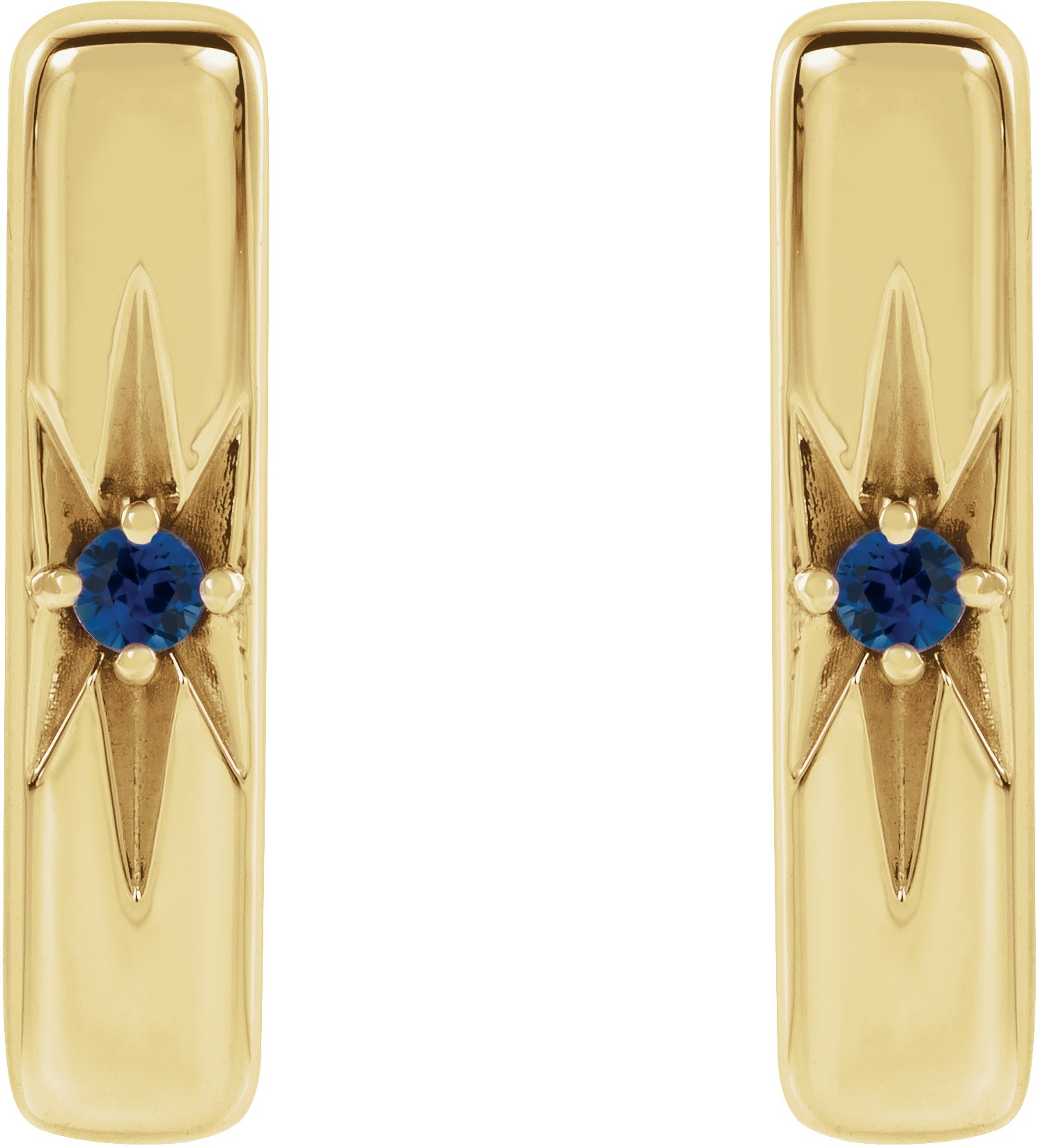 14K Yellow Natural Blue Sapphire Starburst Bar Earrings Ref 17342750