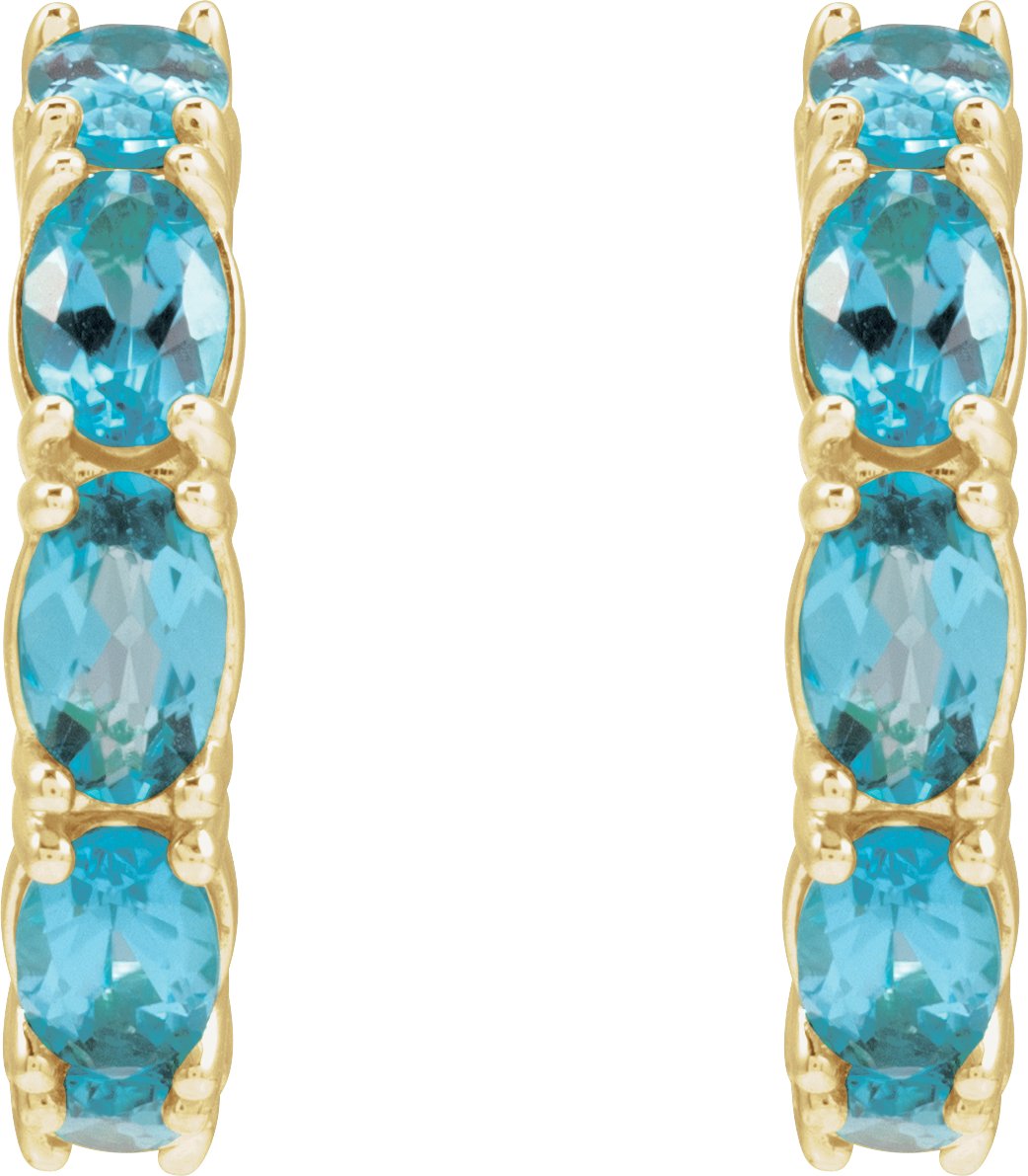 14K Yellow Natural Blue Zircon Hoop Earrings