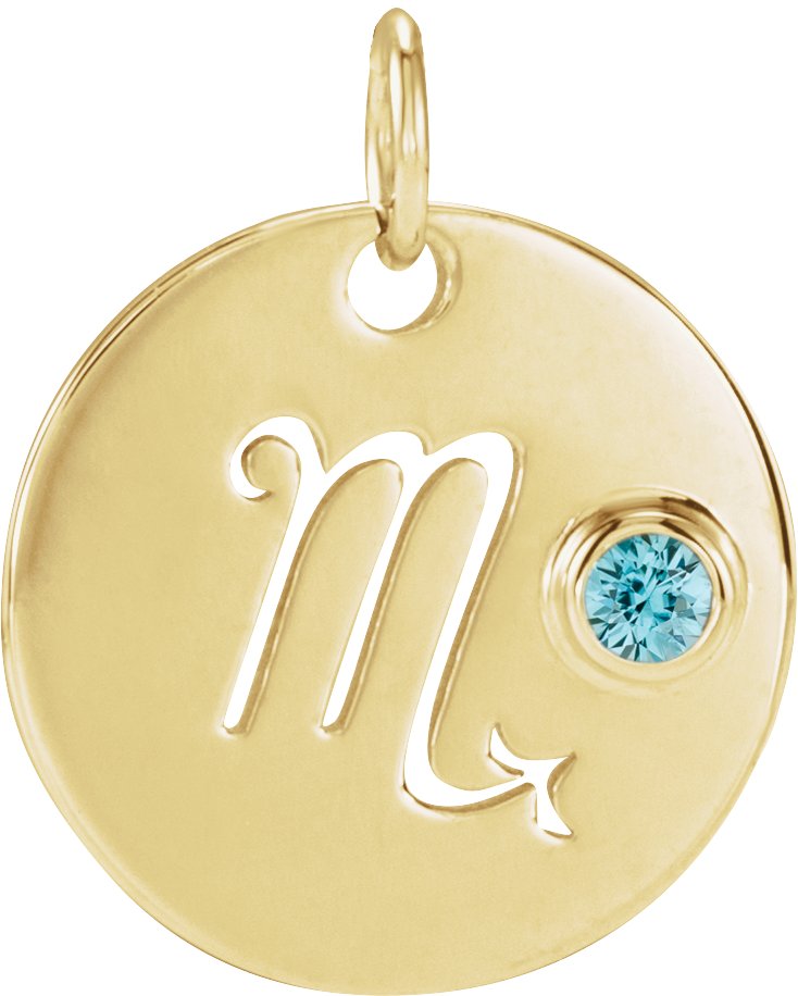 14K Yellow Natural Blue Zircon Scorpio Zodiac Pendant Ref 17886527
