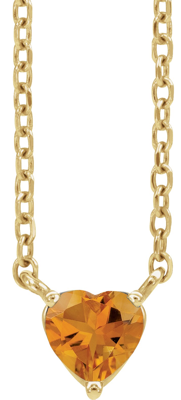 14K Yellow Natural Citrine Heart 16 to 18 inch Necklace Ref 19750317