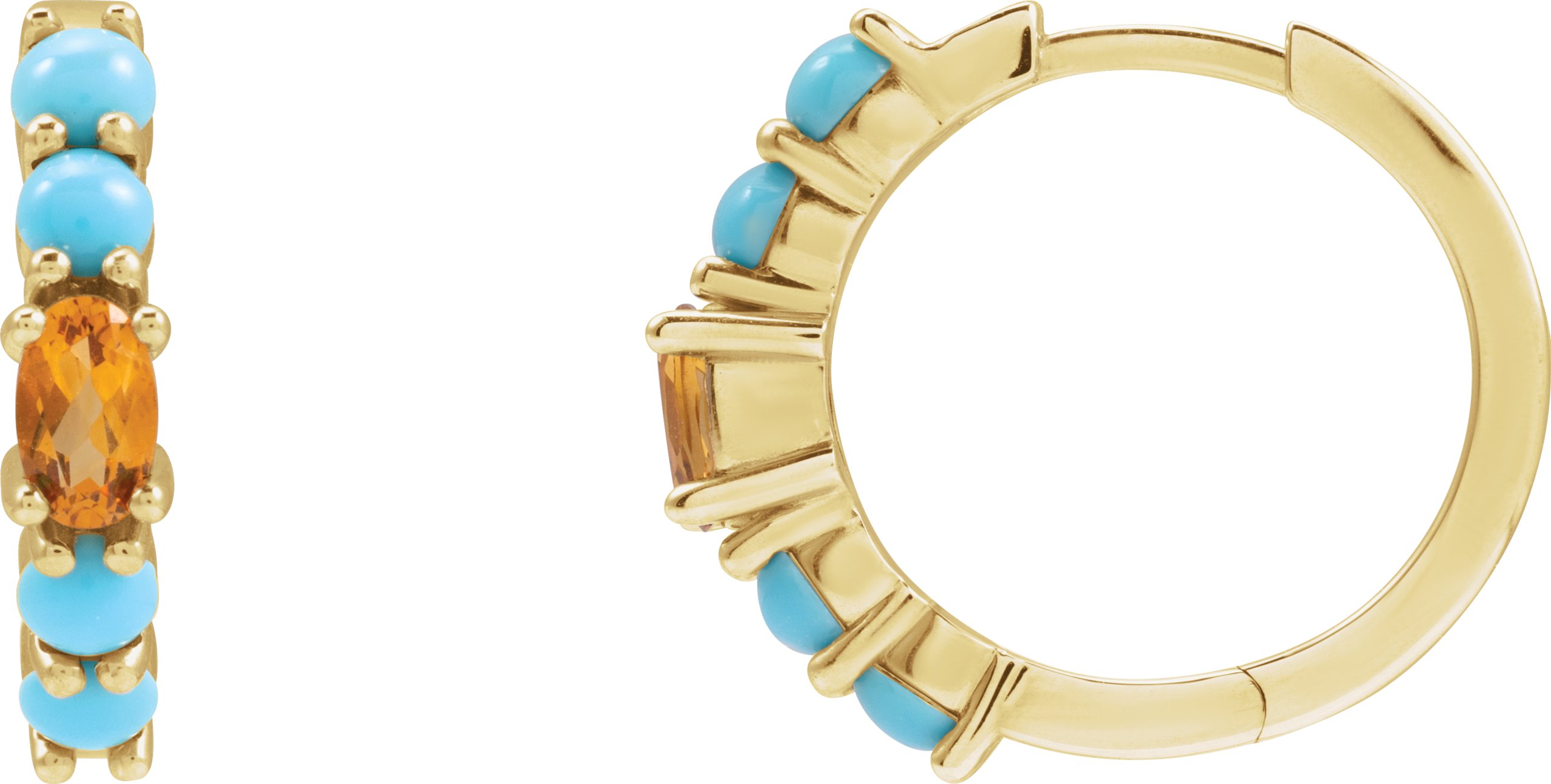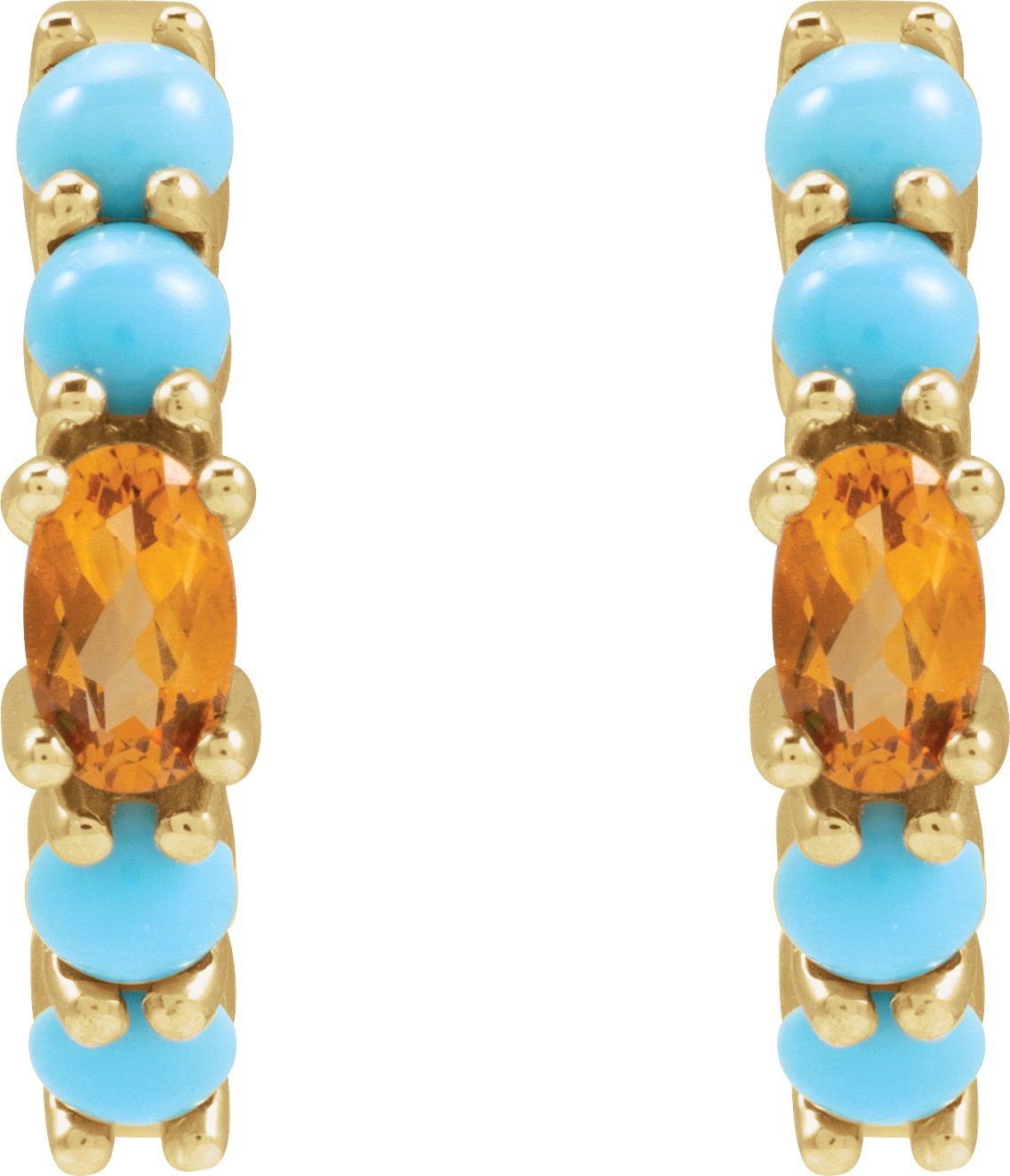 Description: Natural Citrine And Natural Turquoise Huggie Hoop Earrings