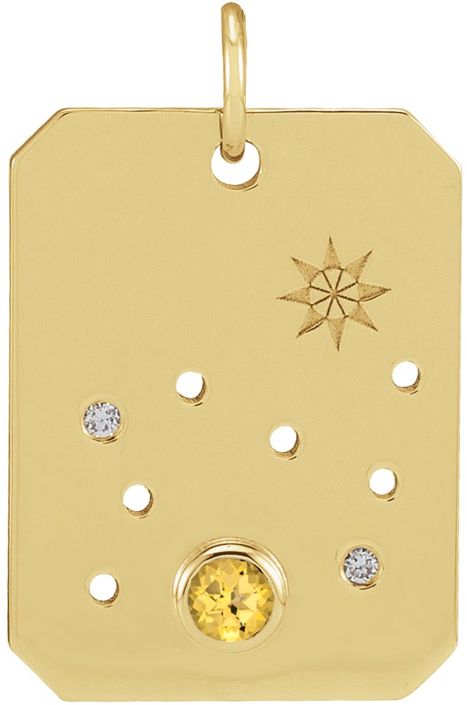 Description: Citrine And Natural Diamond Accented Zodiac Constellation Pendant
