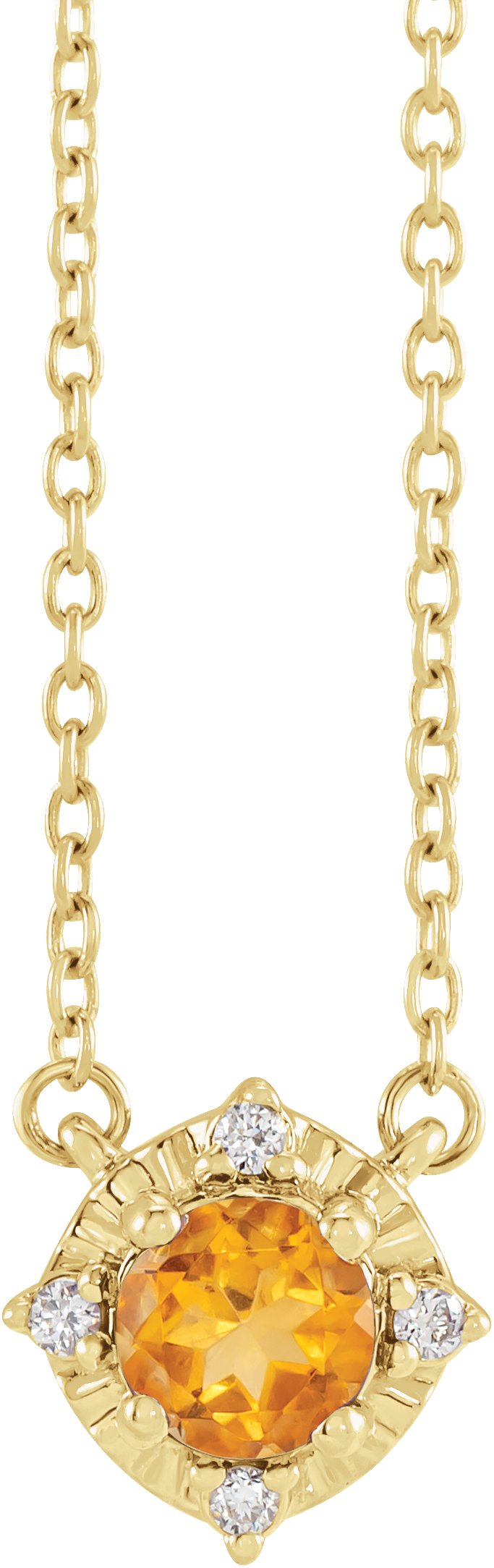 Description: Citrine And .04 CTW Natural Diamond Necklace