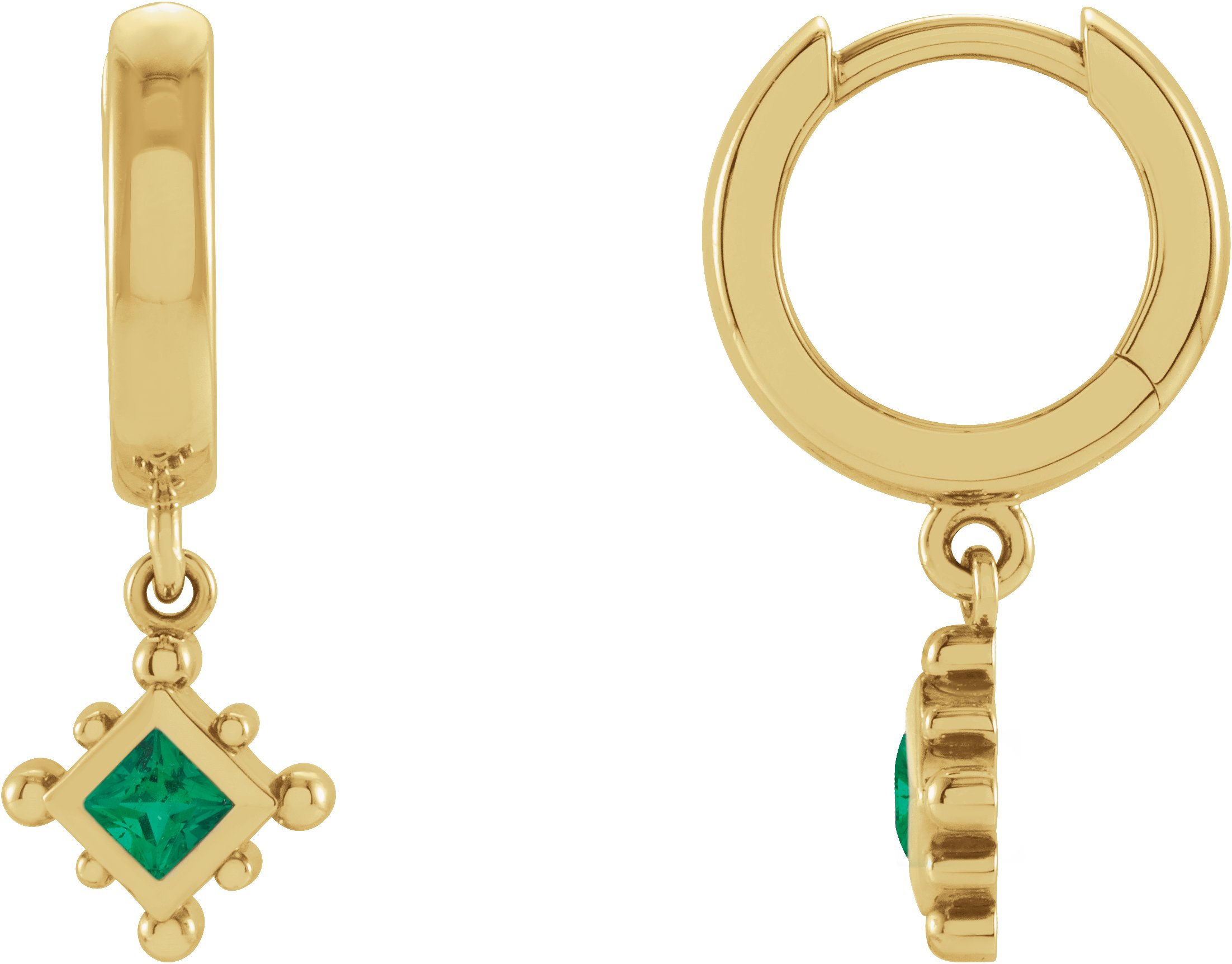 14K Yellow Natural Emerald Beaded Bezel Set Hoop Earrings Ref 18069155