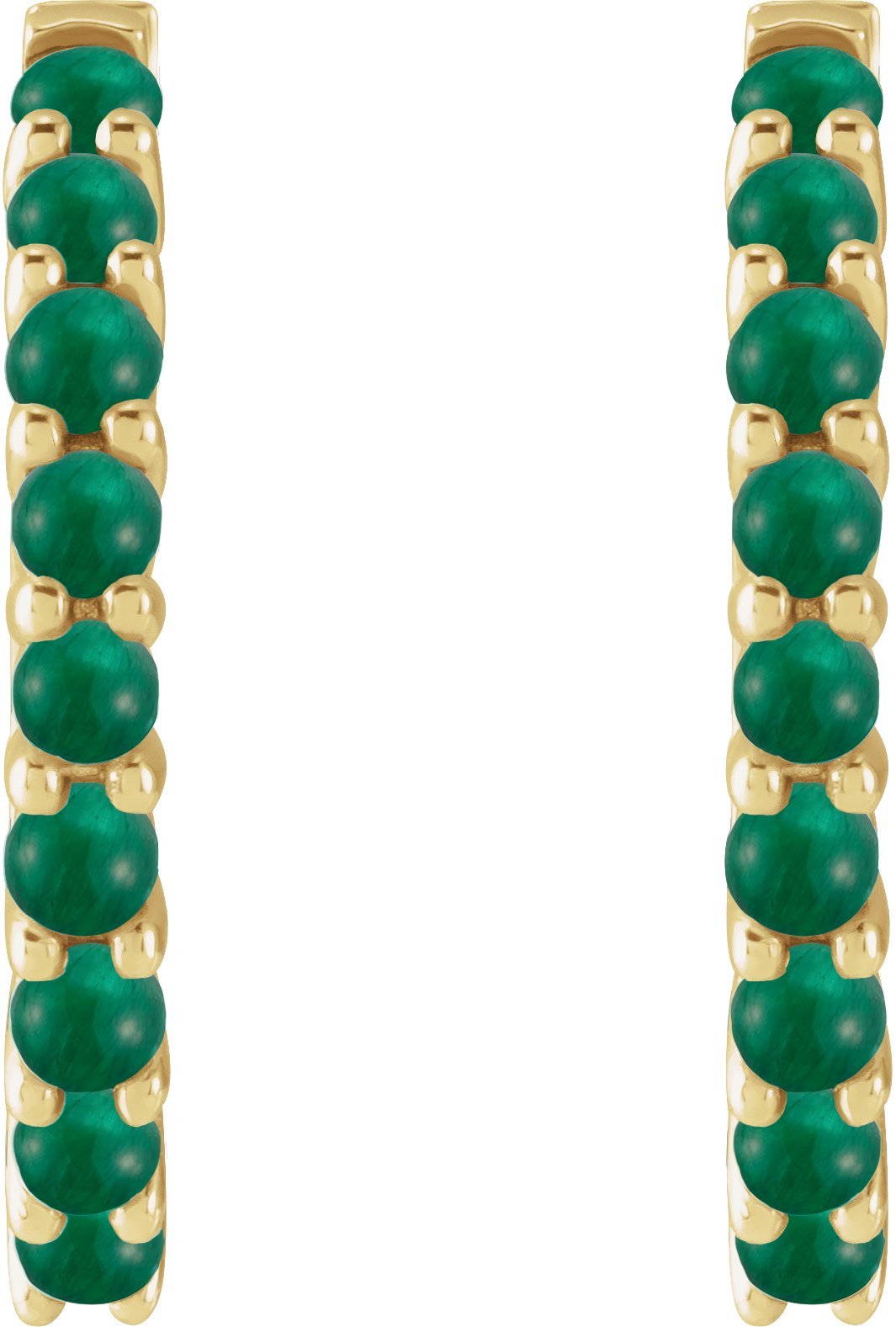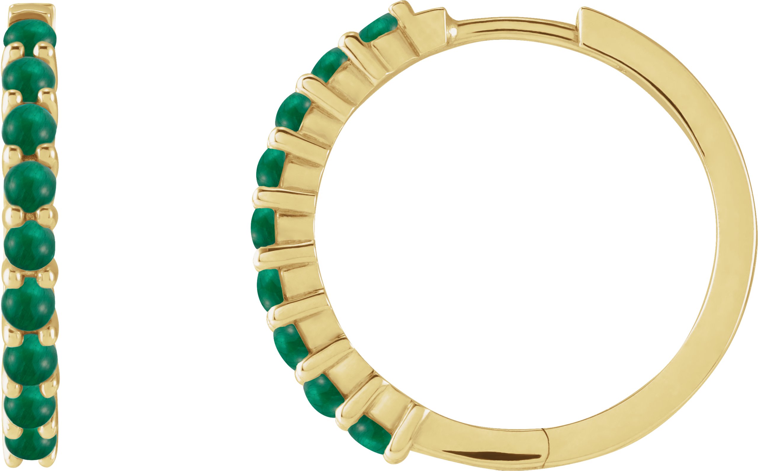 14K Yellow Natural Emerald Cabochon 20 mm Huggie Hoop Earrings