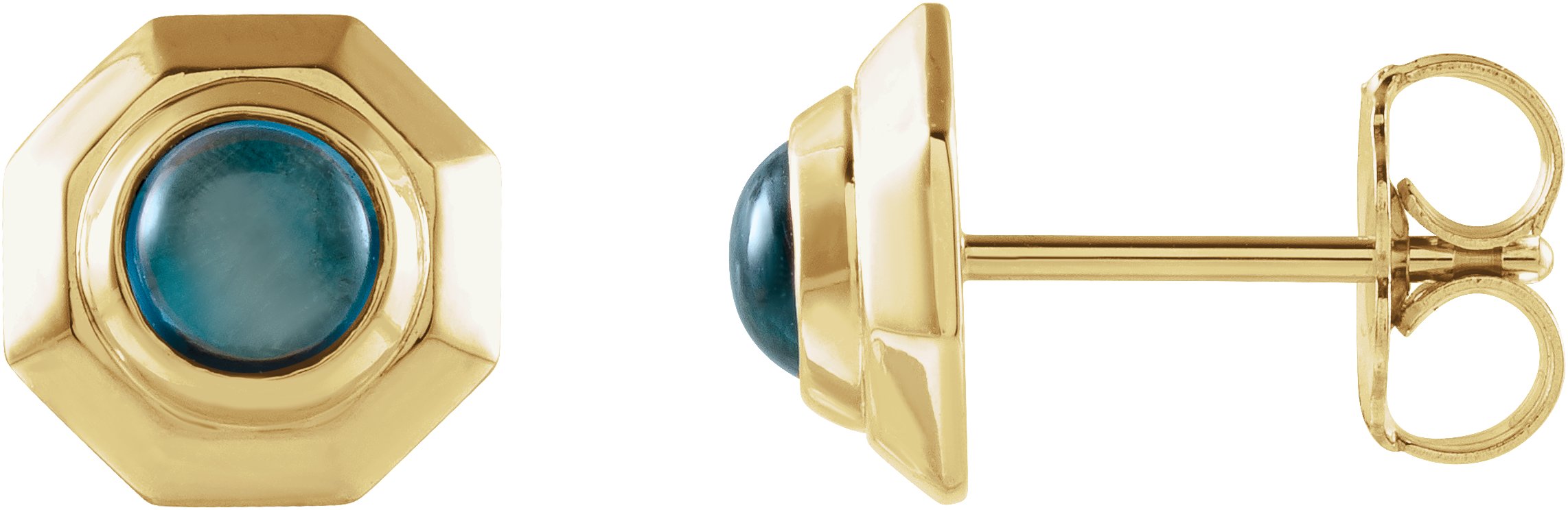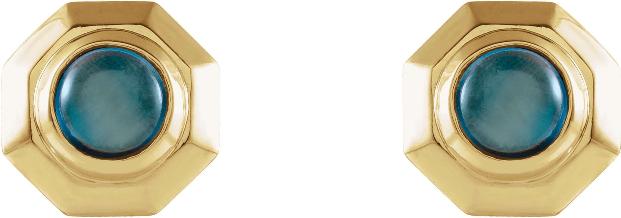 14K Yellow Natural London Blue Topaz Geometric Cabochon Earrings Ref 17399497