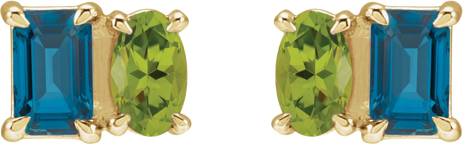14K Yellow Natural London Blue Topaz & Natural Peridot Two-Stone Stud Earrings