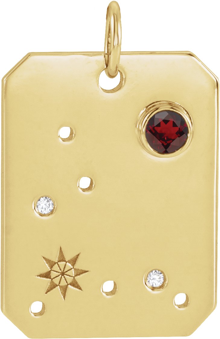 Description: Natural Mozambique Garnet And Natural Diamond Accented Zodiac Constellation Pendant