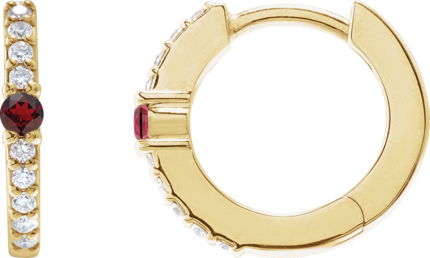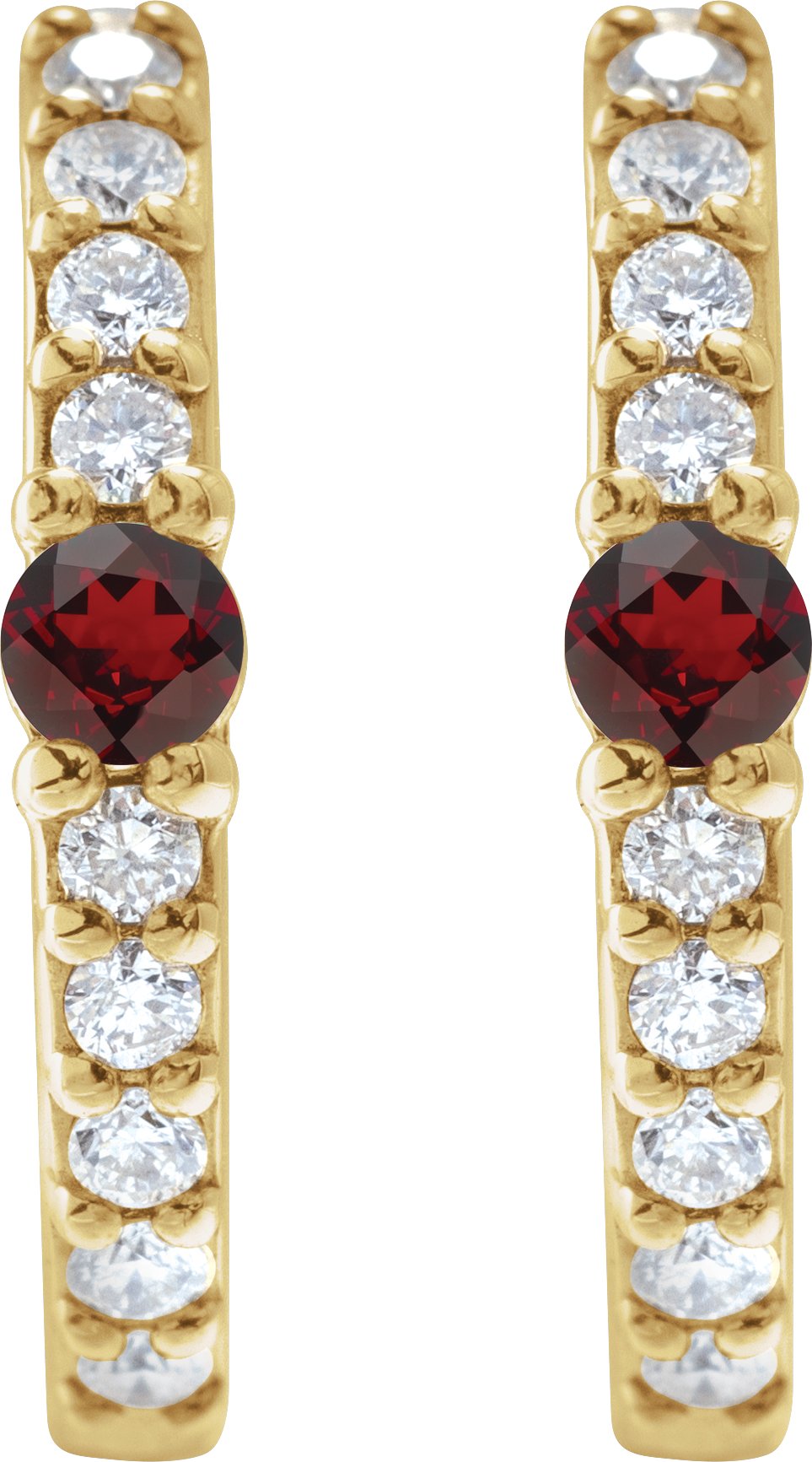 14K Yellow Natural Mozambique Garnet & 1/8 CTW Natural Diamond 13.6 mm Hoop Earring