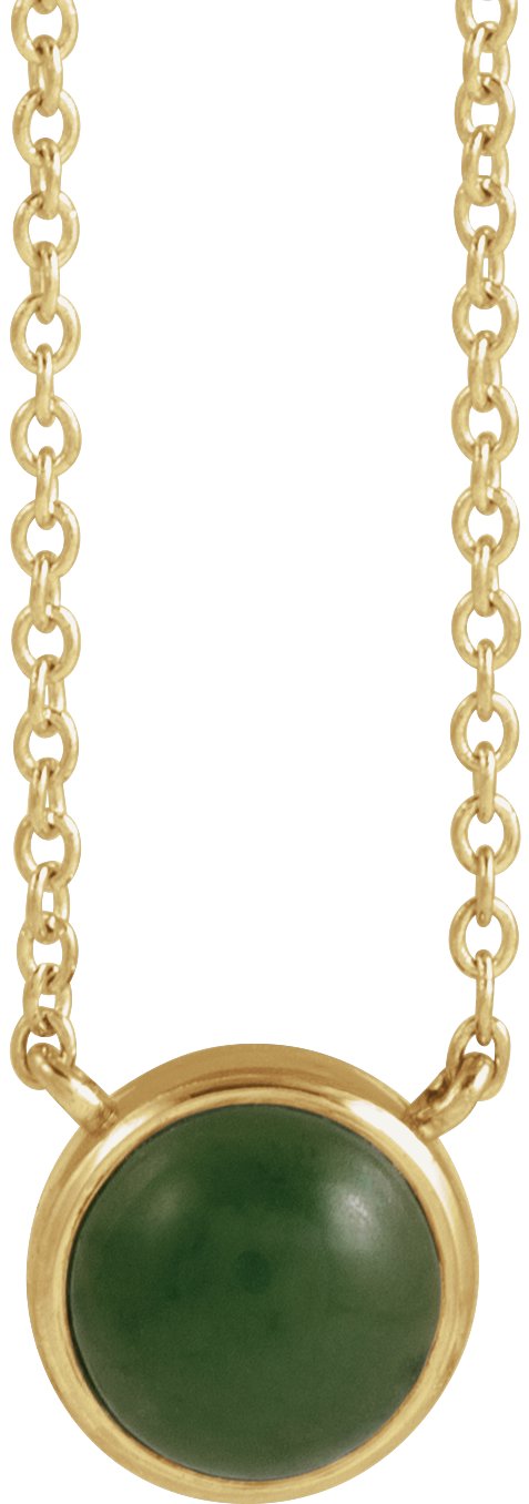 Description: Natural Nephrite Jade Cabochon Bezel-Set Necklace