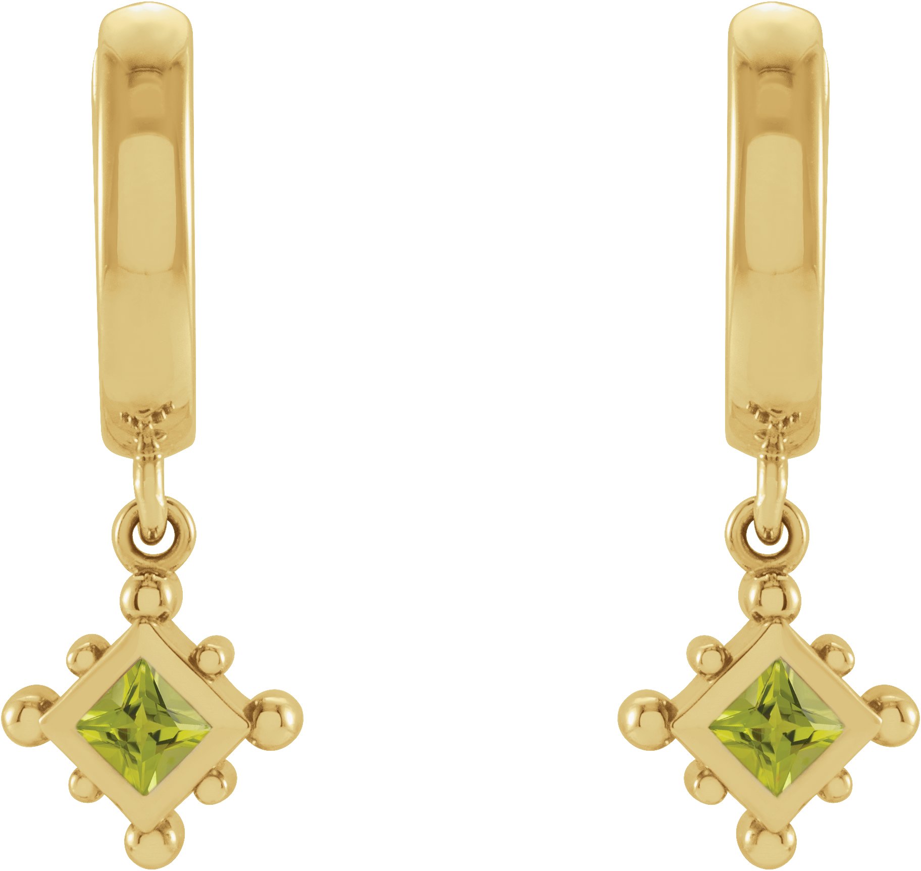 14K Yellow Natural Peridot Beaded Bezel Set Hoop Earrings Ref 18069153