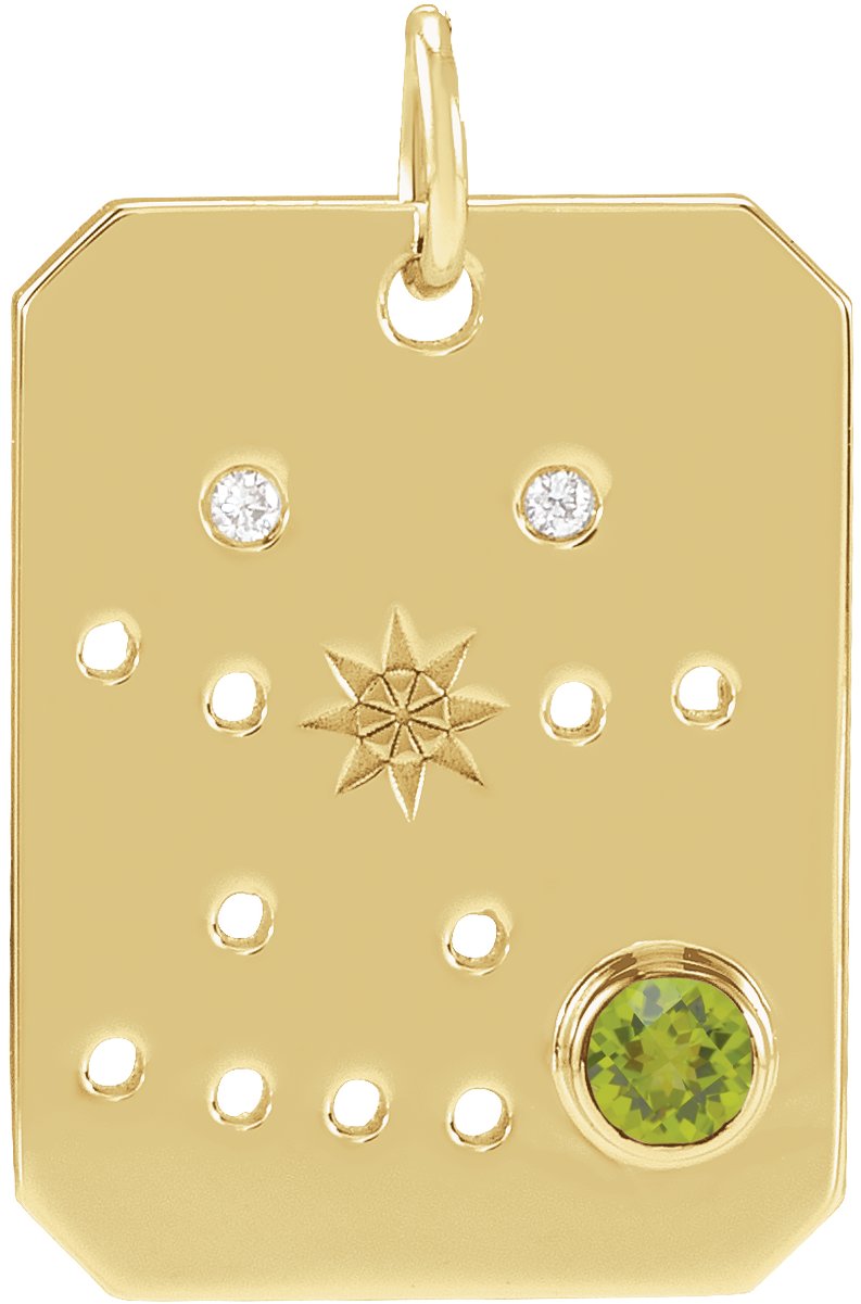 Description: Natural Peridot And Natural Diamond Accented Zodiac Constellation Pendant