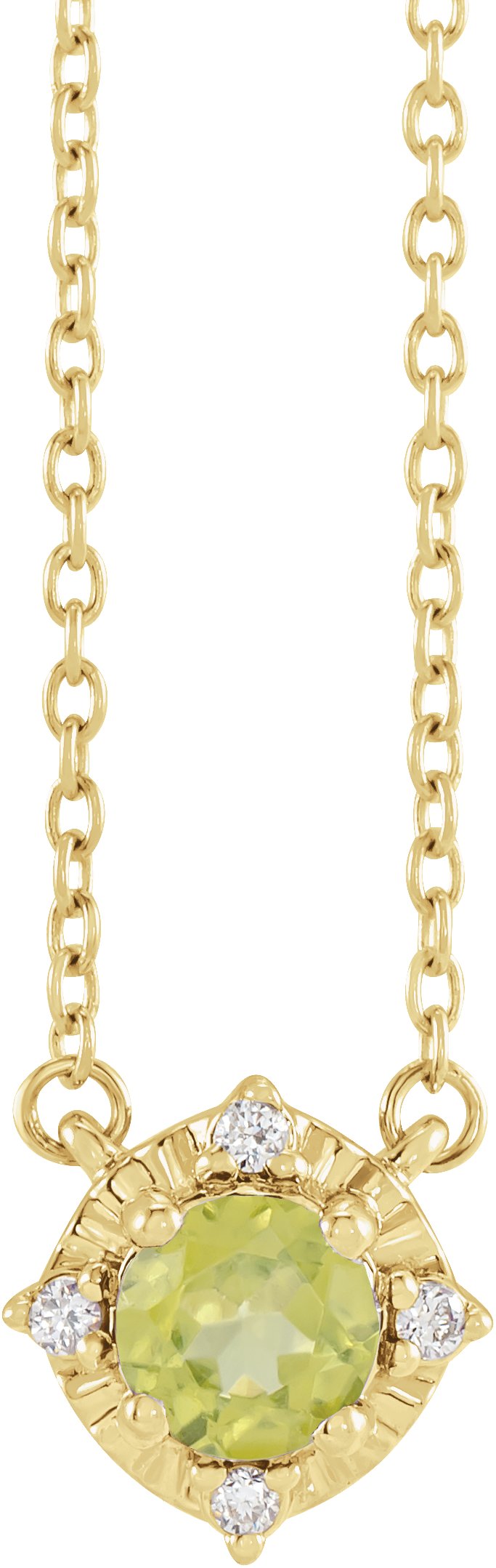 14K Yellow Natural Peridot and .04 CTW Natural Diamond Halo Style 18 inch Necklace Ref 17917665