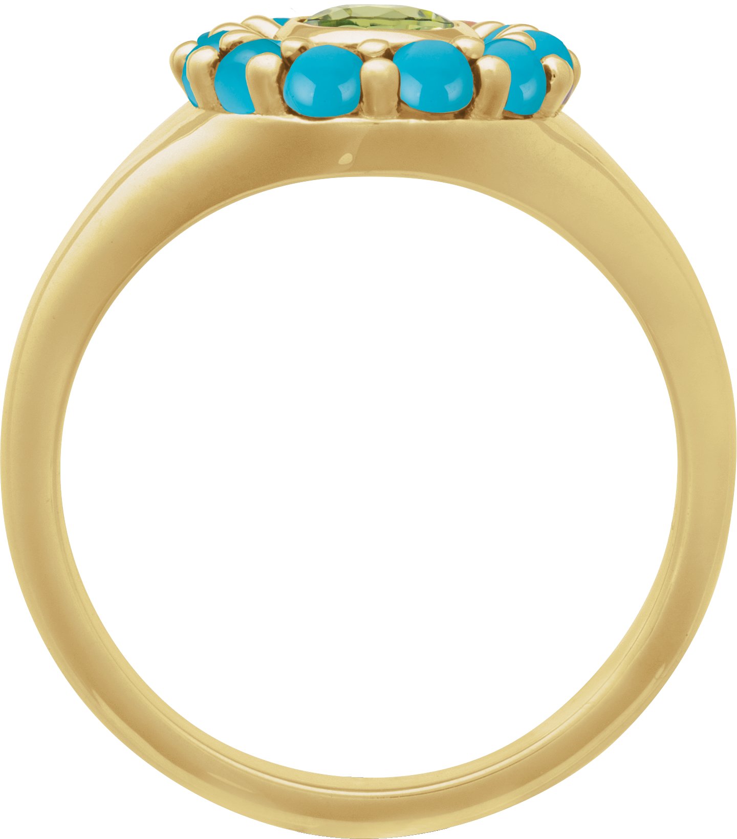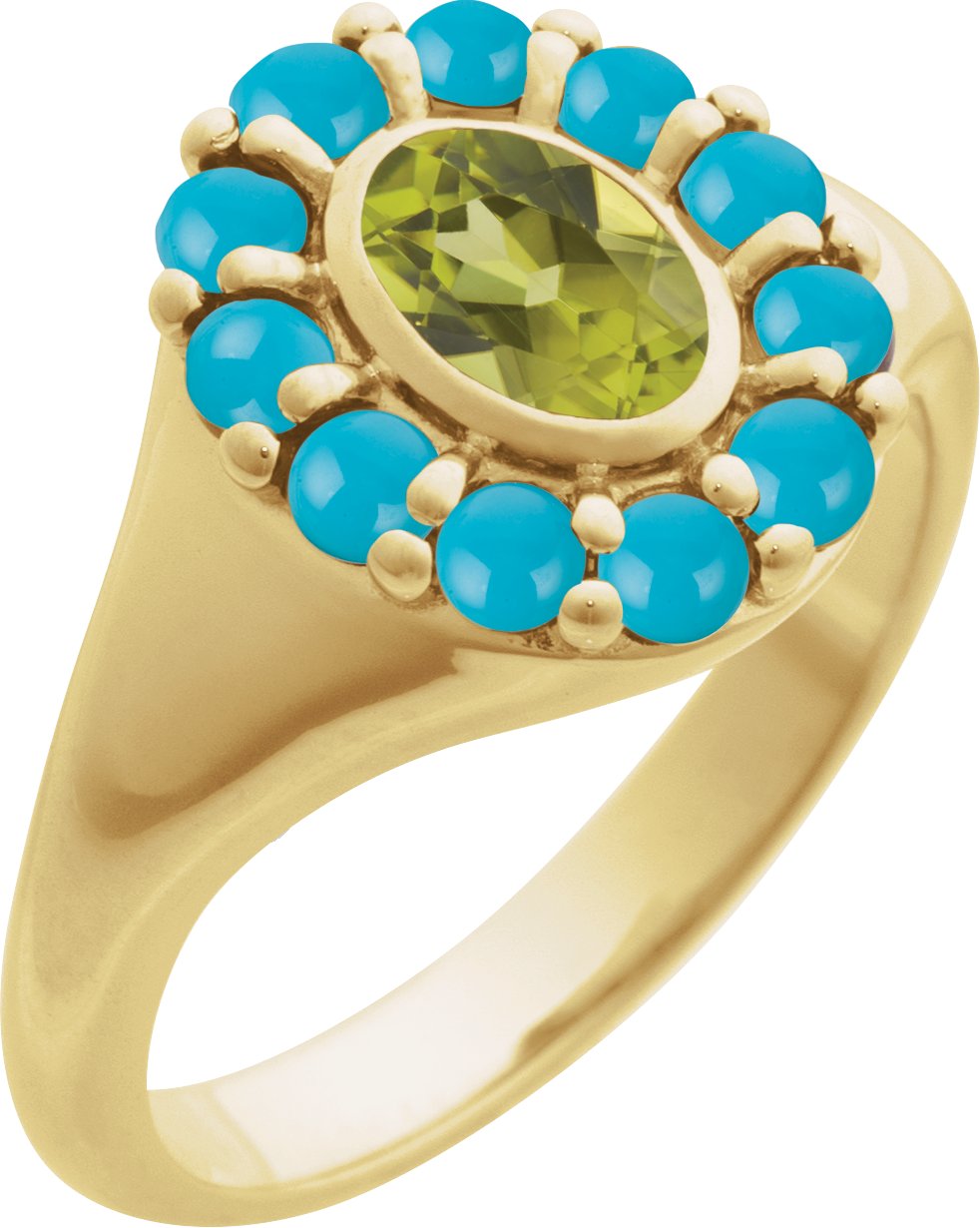14K Yellow Natural Peridot & Natural Turquoise Halo-Style Ring