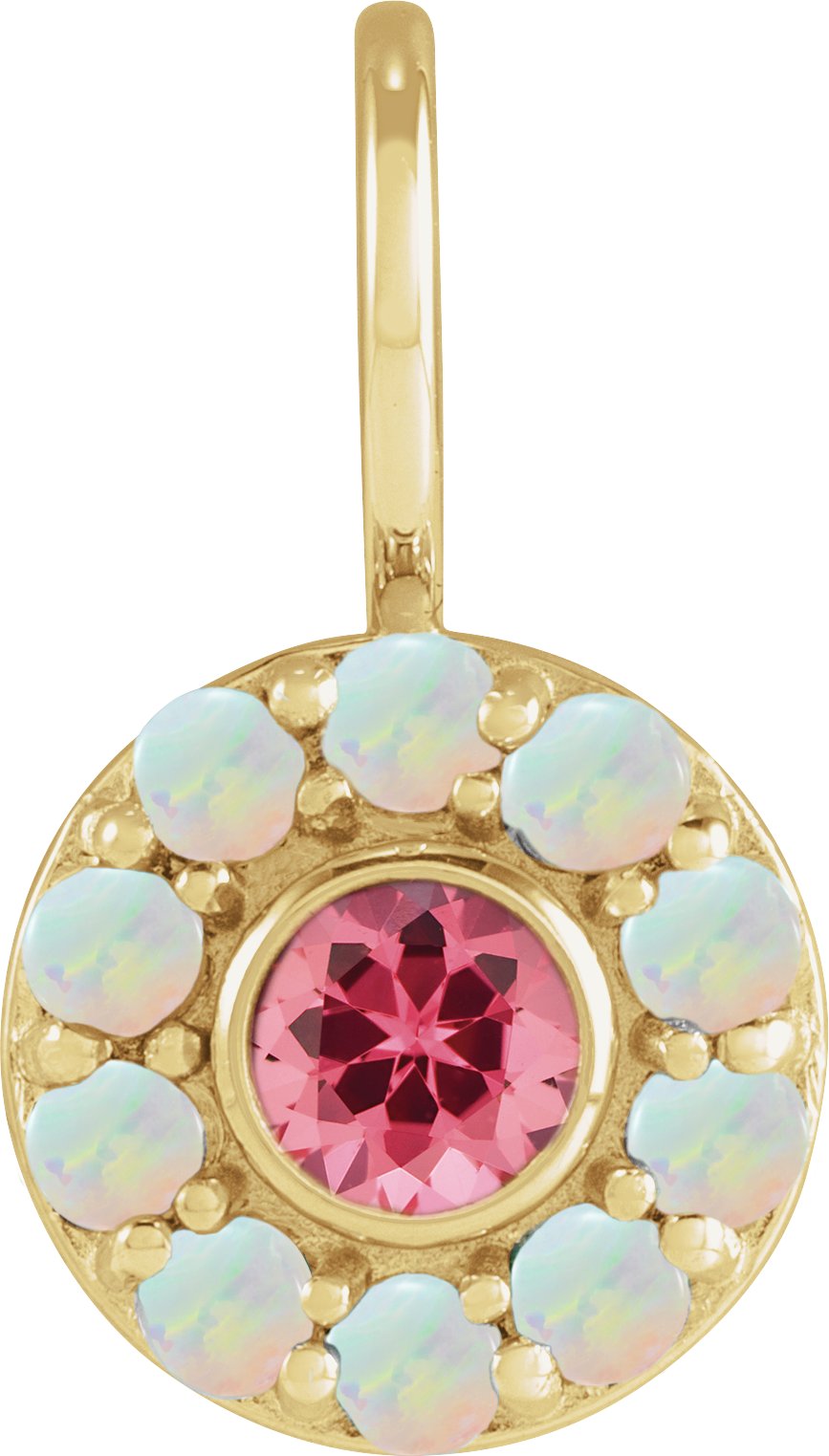 14K Yellow Natural Pink Spinel and Natural White Opal Halo Style Charm or Pendant Ref 19750435