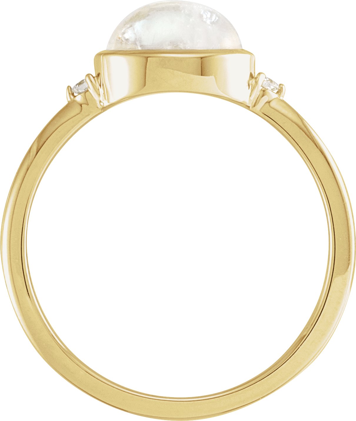 Description: Natural Rainbow Moonstone And .03 CTW Natural Diamond Bezel-Set Cabochon Ring