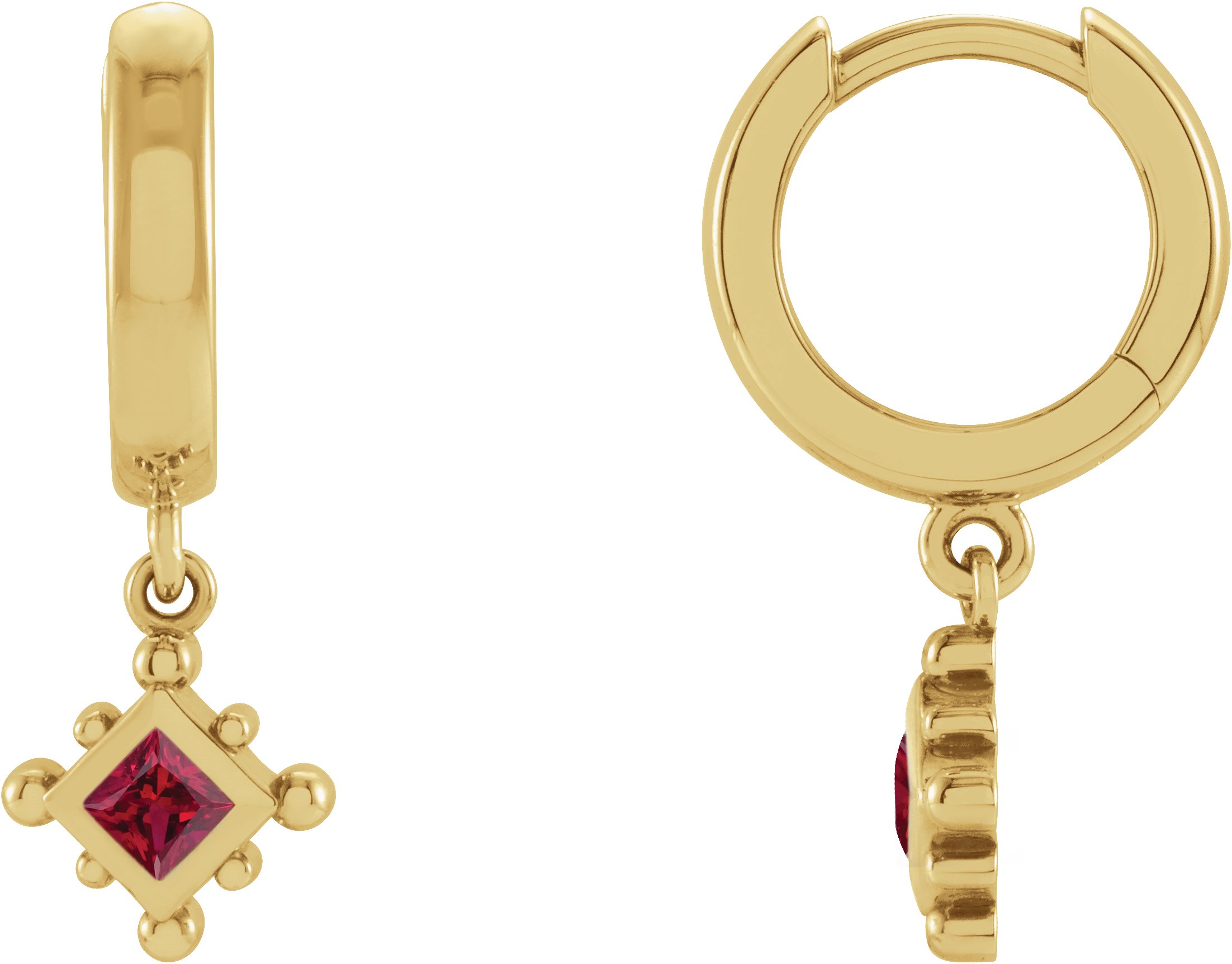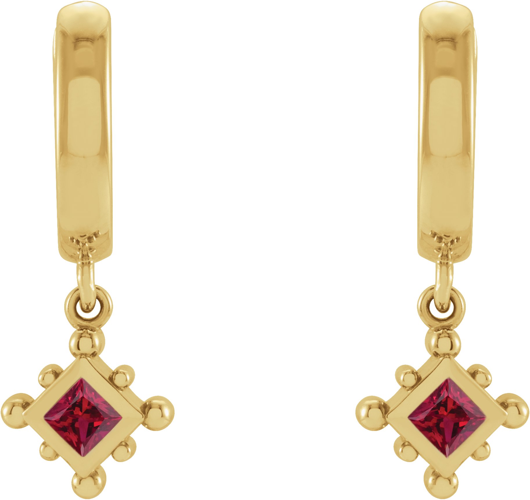 14K Yellow Natural Ruby Beaded Bezel Set Hoop Earrings Ref 18069122
