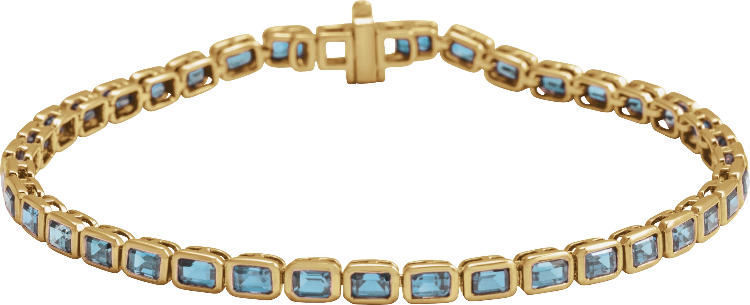 14K Yellow Natural Sky Blue Topaz Line 7" Bracelet