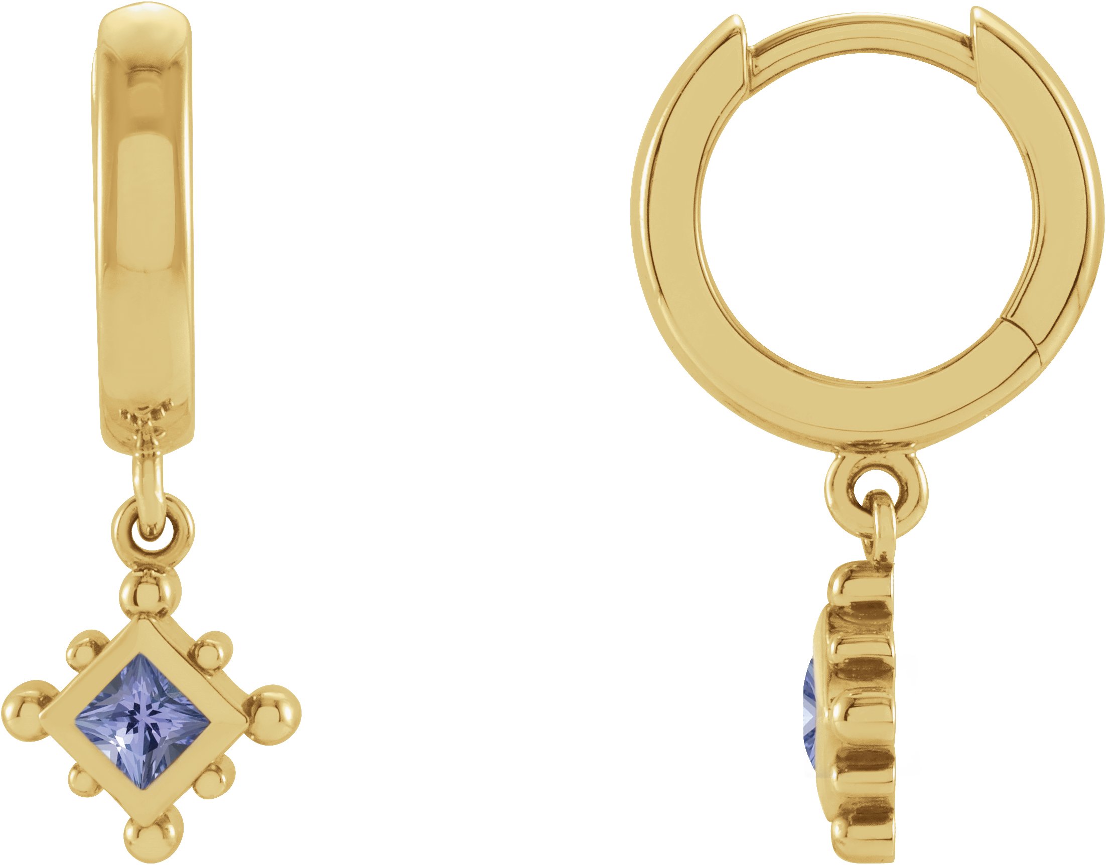 14K Yellow Natural Tanzanite Beaded Bezel Set Hoop Earrings Ref 18069084