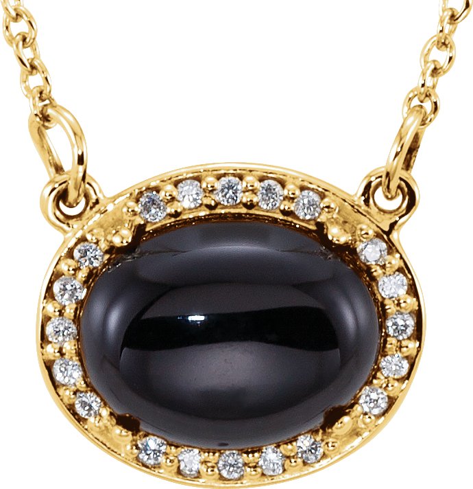 14K Yellow Onyx & .05 CTW Diamond Halo Style 16.5 inch Necklace