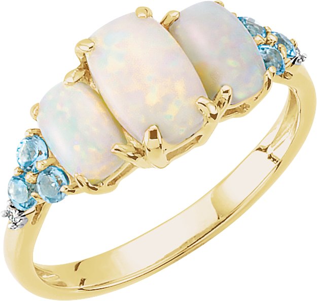 14K Yellow Opal, Swiss Blue Topaz, & .012 Diamond Ring