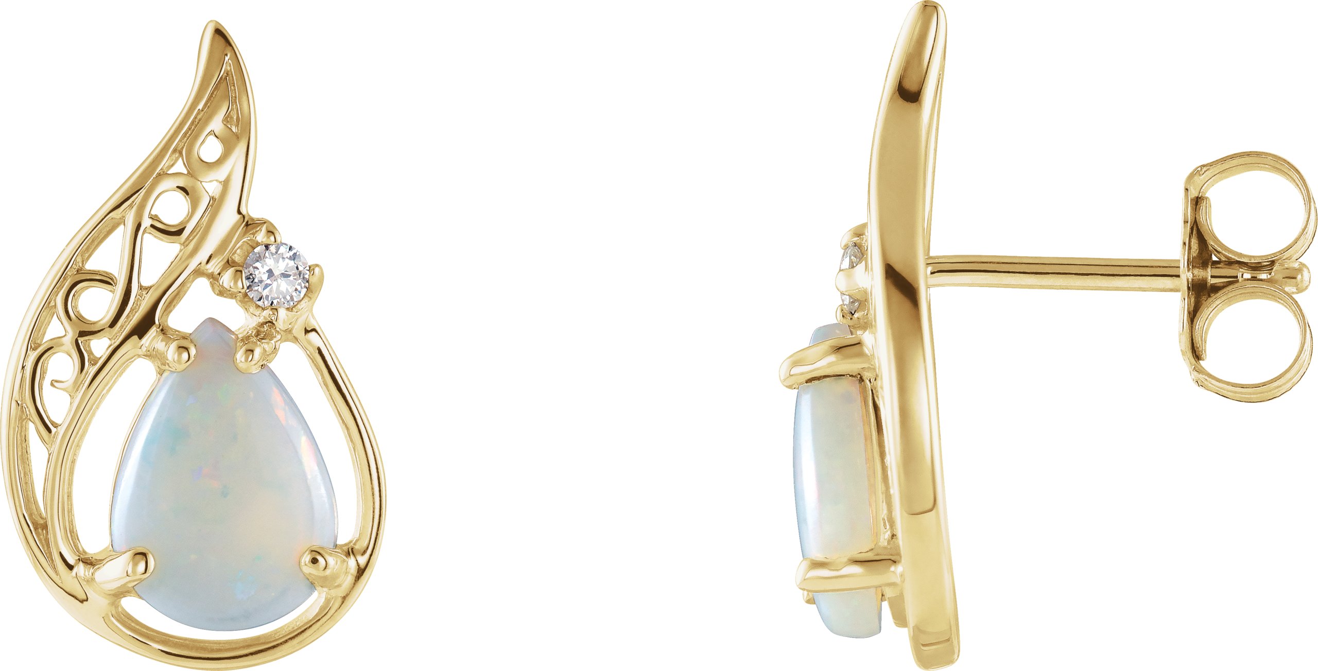 14K Yellow Opal & .03 CTW Diamond Earrings