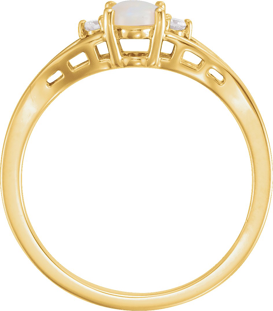 Description: Genuine White Opal And .04 Ctw Diamond Ring