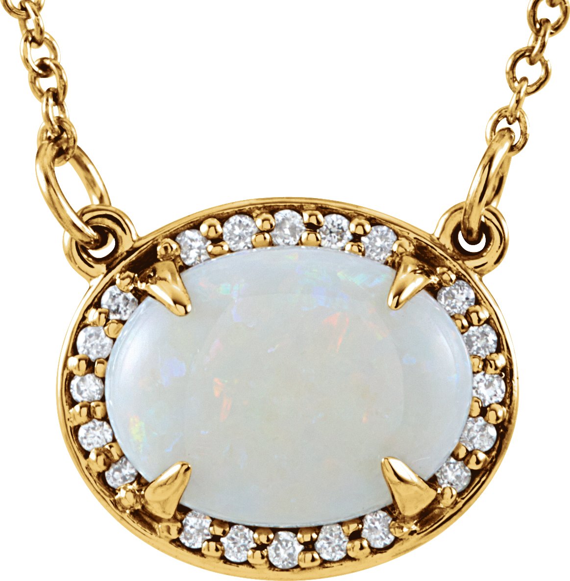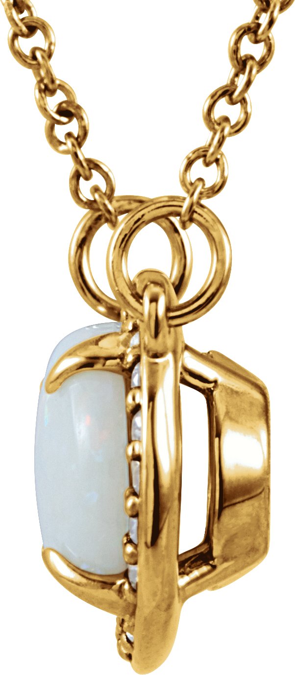 14K Yellow Opal & .05 CTW Diamond Halo Style 16.5 inch Necklace