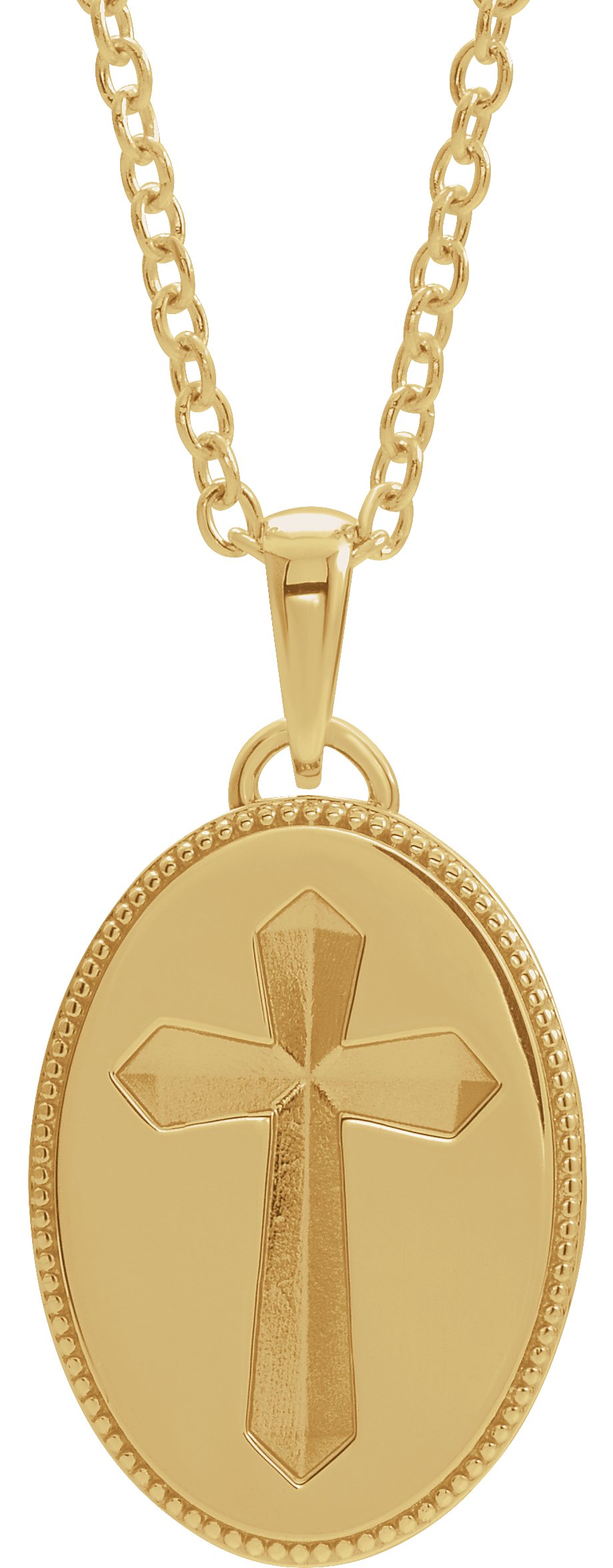 14K Yellow Oval Cross Medal 20" Necklace Ref. 16213968