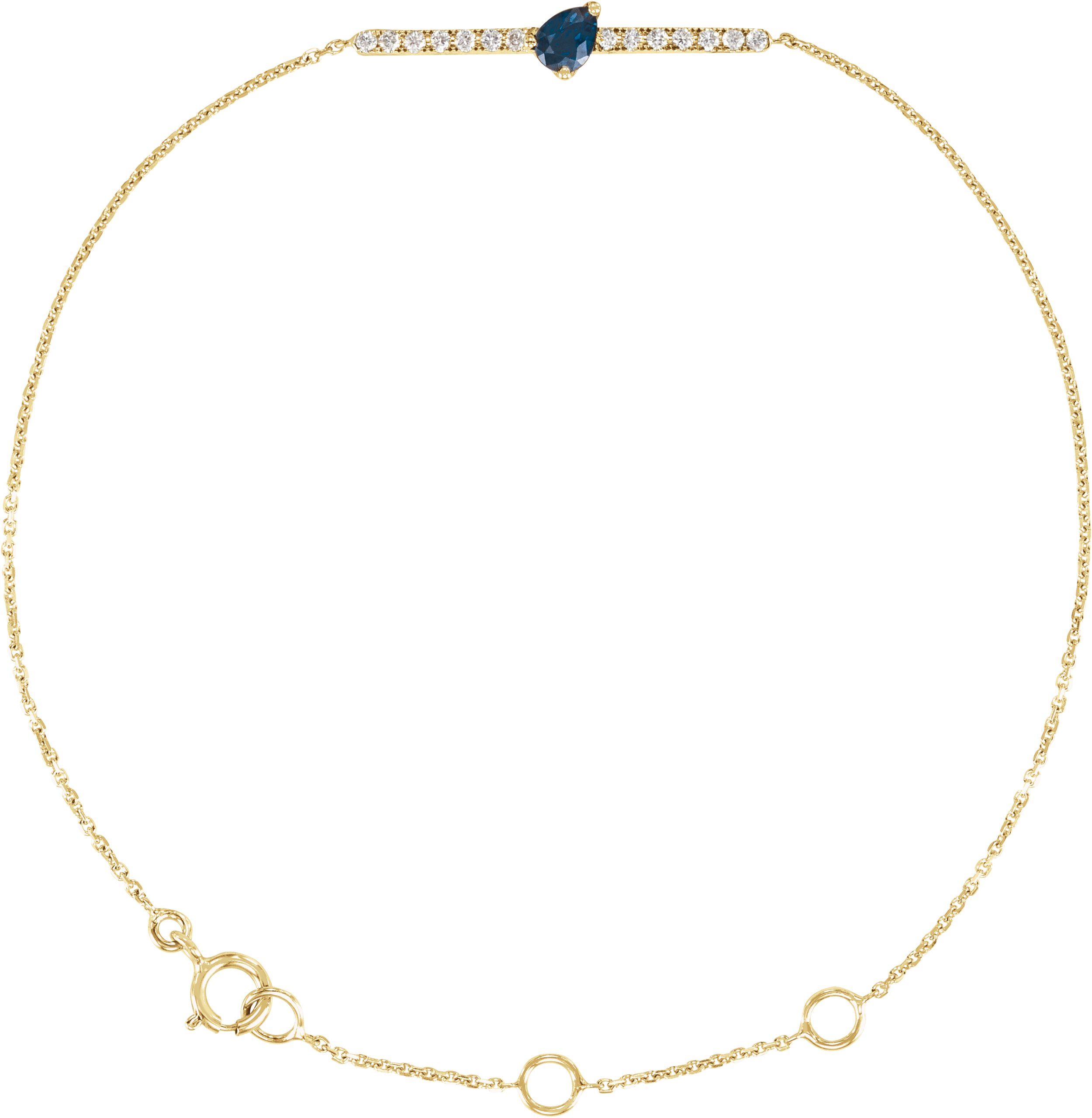 14K Yellow Pear Natural Blue Sapphire and .07 CTW Natural Diamond Bar 6.50 to 7.50 inch Bracelet Ref 17325008