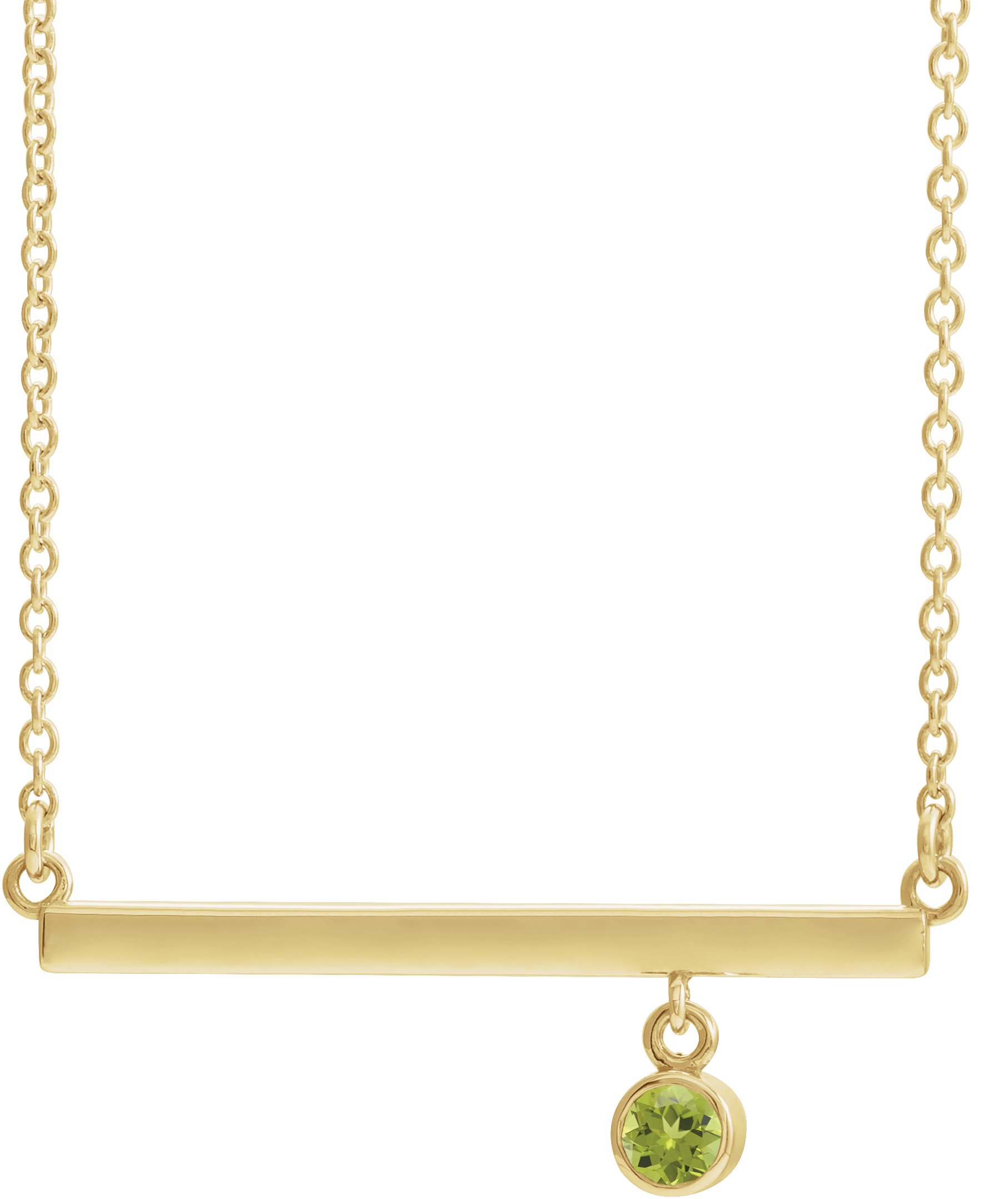 14K Yellow Peridot Bezel Set 16 inch Bar Necklace