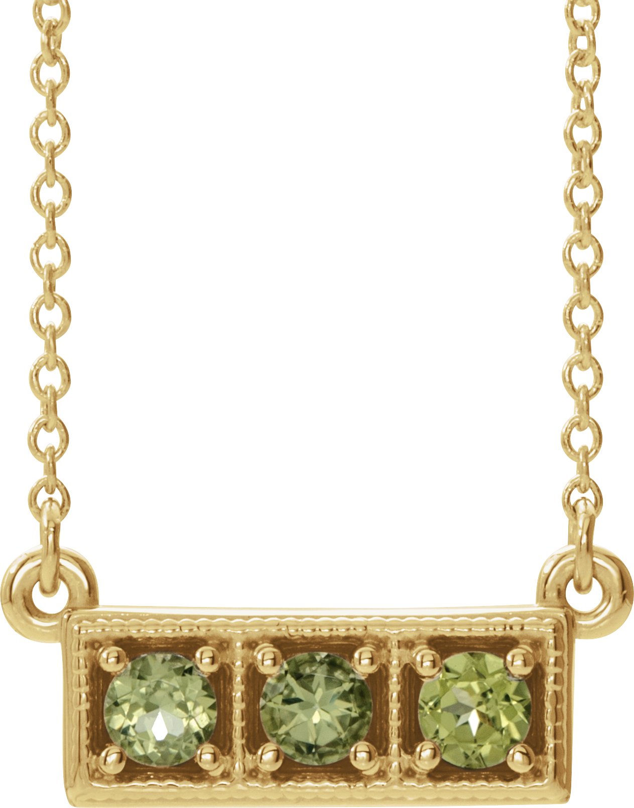 14K Yellow Peridot Three Stone Granulated Bar 16 18" Necklace Ref. 14204256