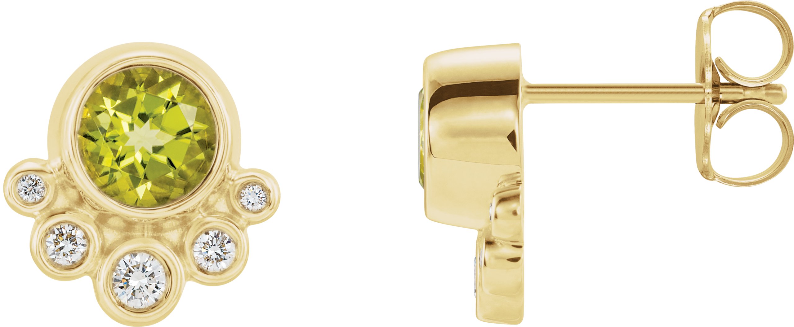 14K Yellow Peridot & 1/8 CTW Diamond Earrings