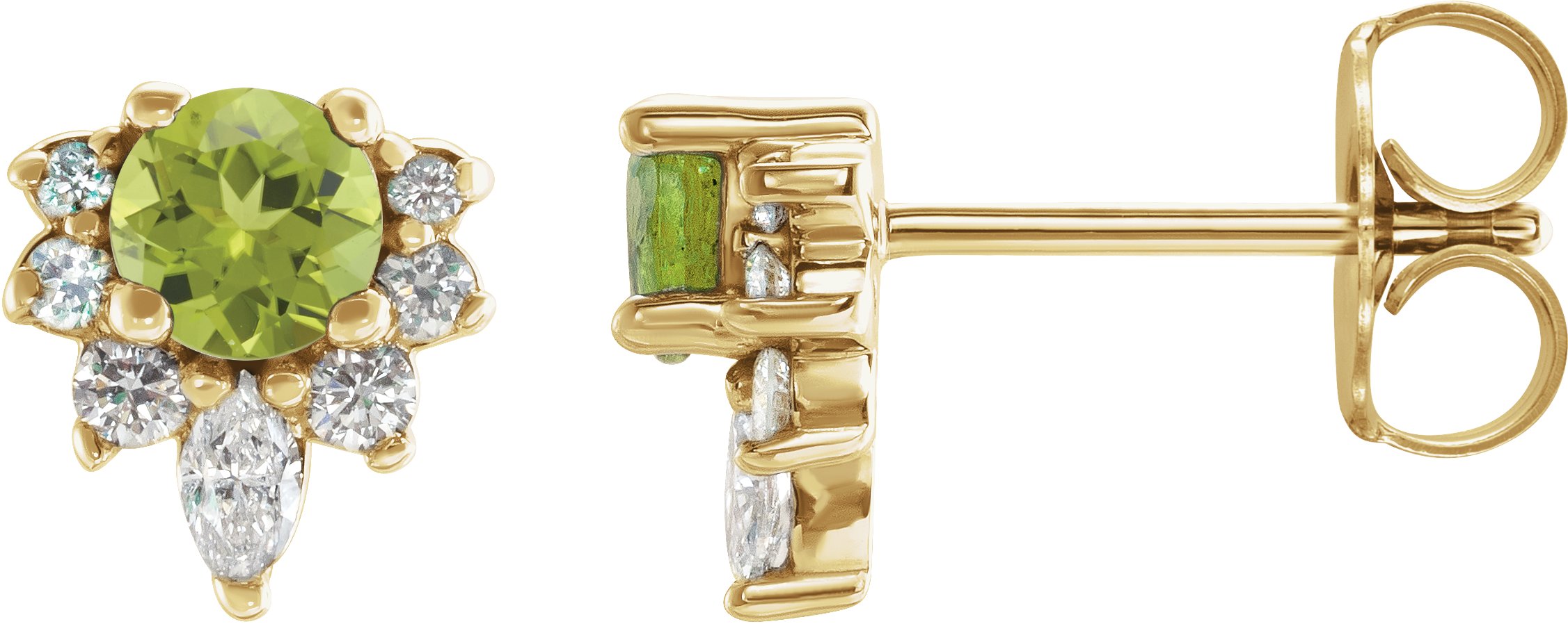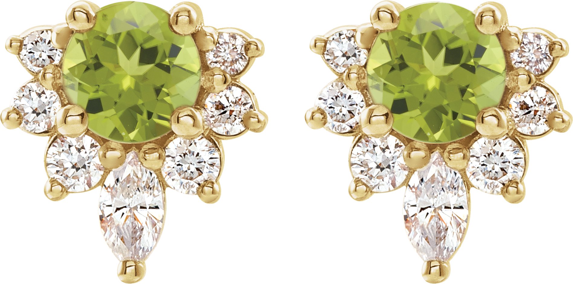 14K Yellow Peridot & 1/6 CTW Diamond Earrings