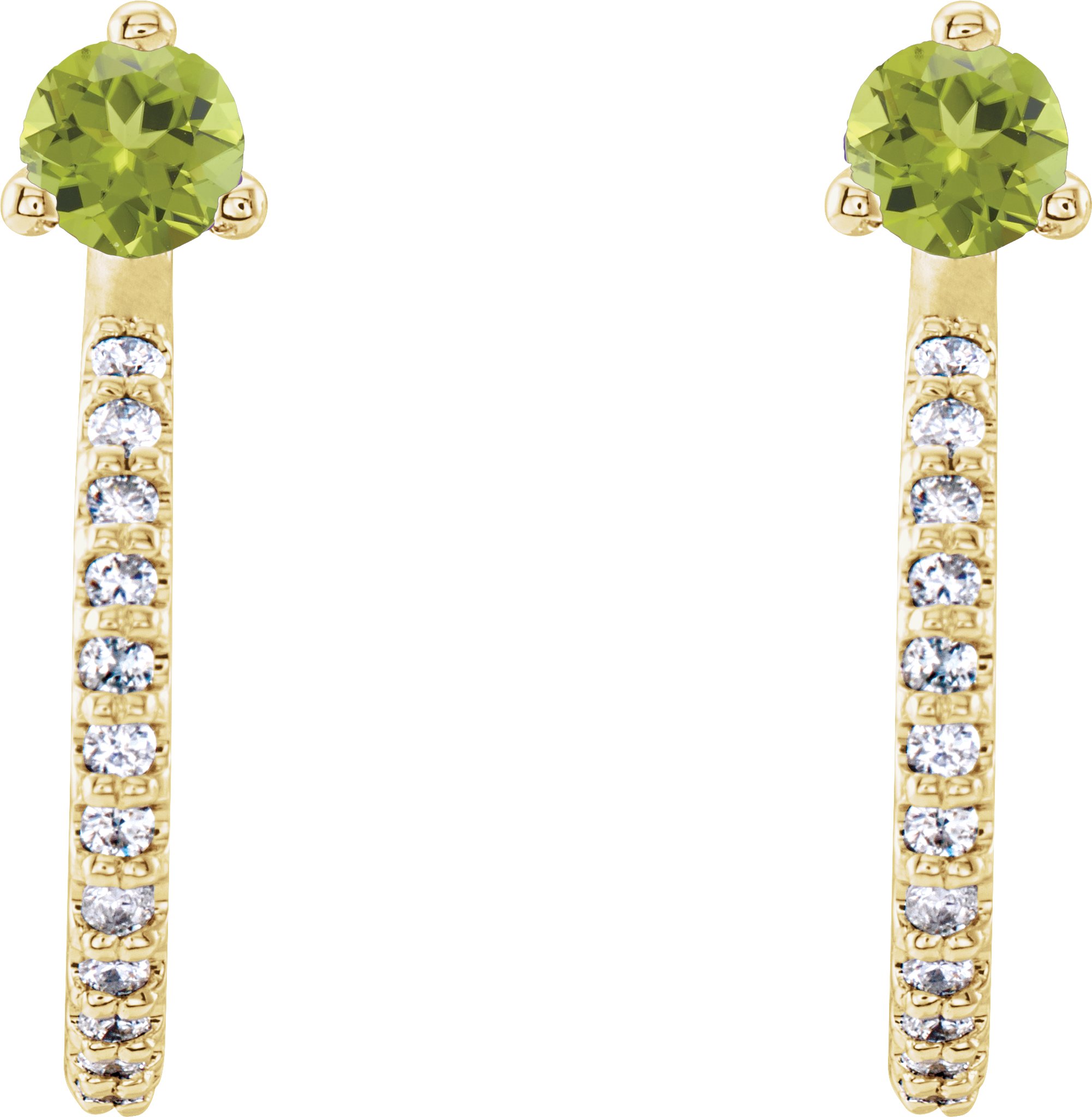 14K Yellow Peridot and .17 CTW Diamond Hoop Earrings