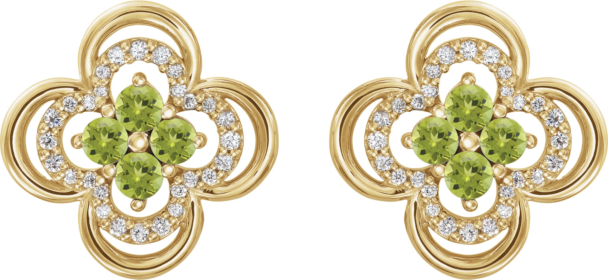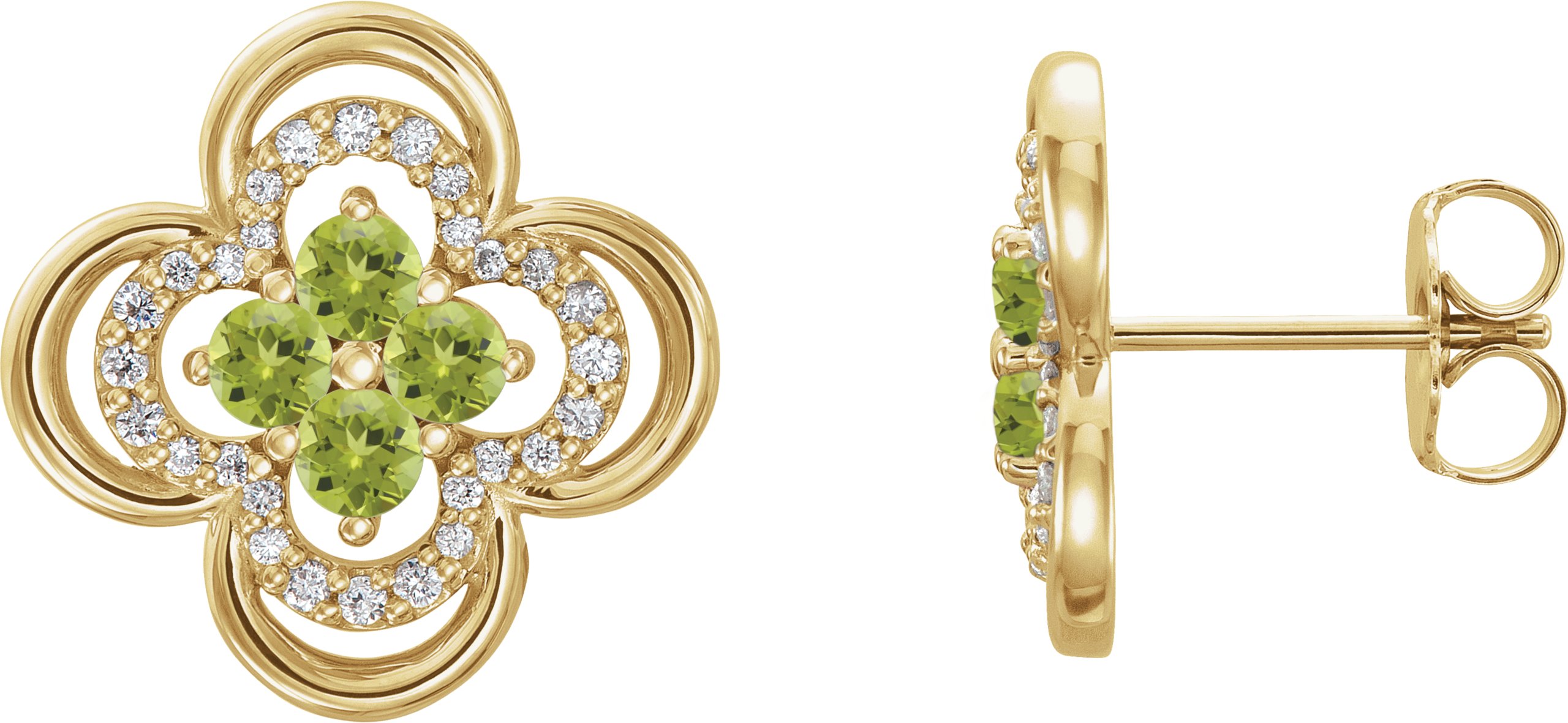 14K Yellow Peridot & 1/5 CTW Diamond Clover Earrings