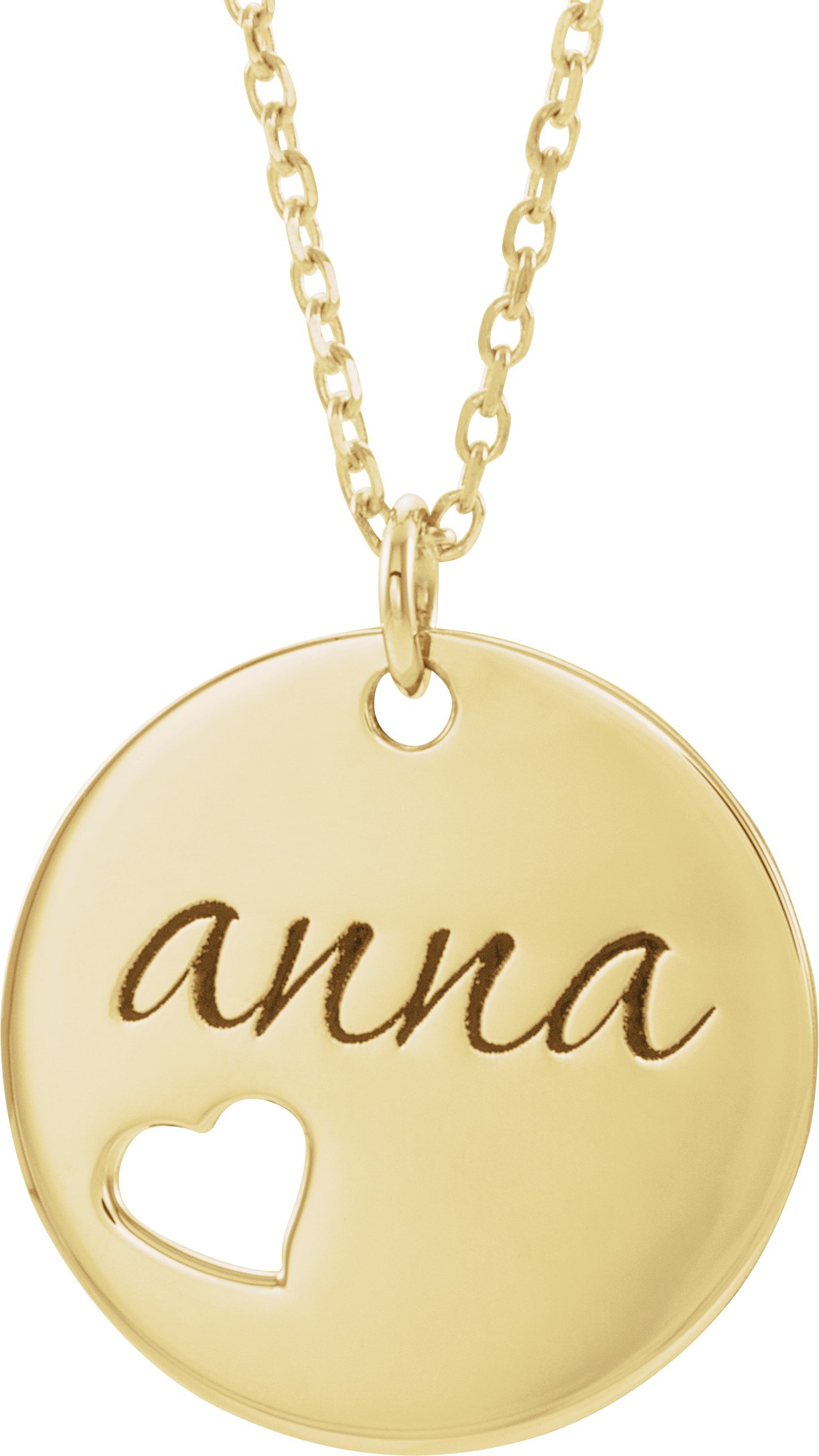 14K Yellow Pierced Heart Engravable Disc 16 18" Necklace Ref. 12908244