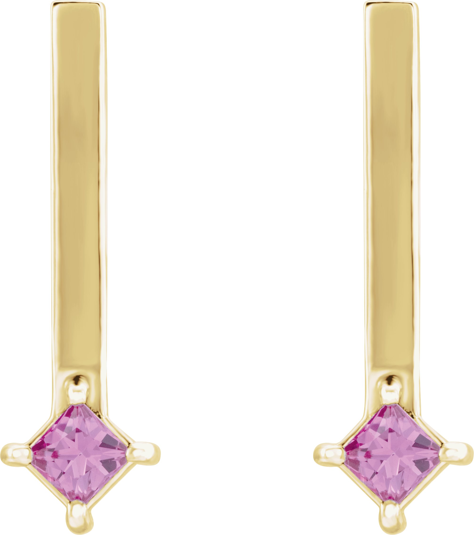 14K Yellow Pink Sapphire Bar Drop Earrings