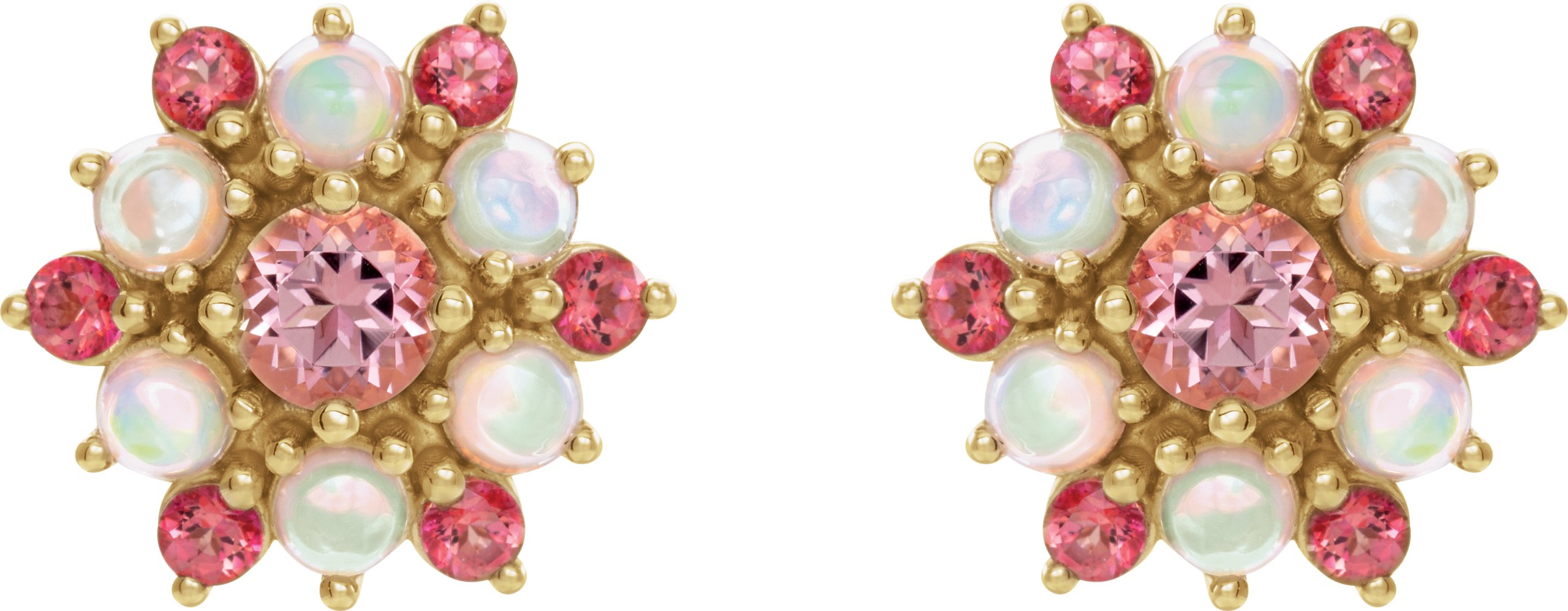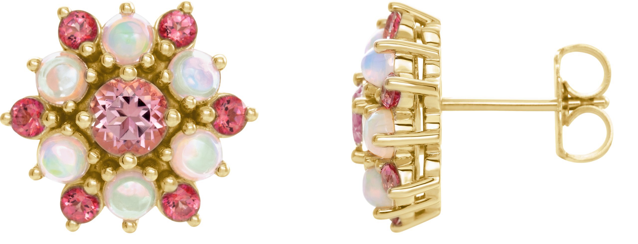 14K Yellow Pink Topaz & Ethiopian Opal Cabochon Earrings