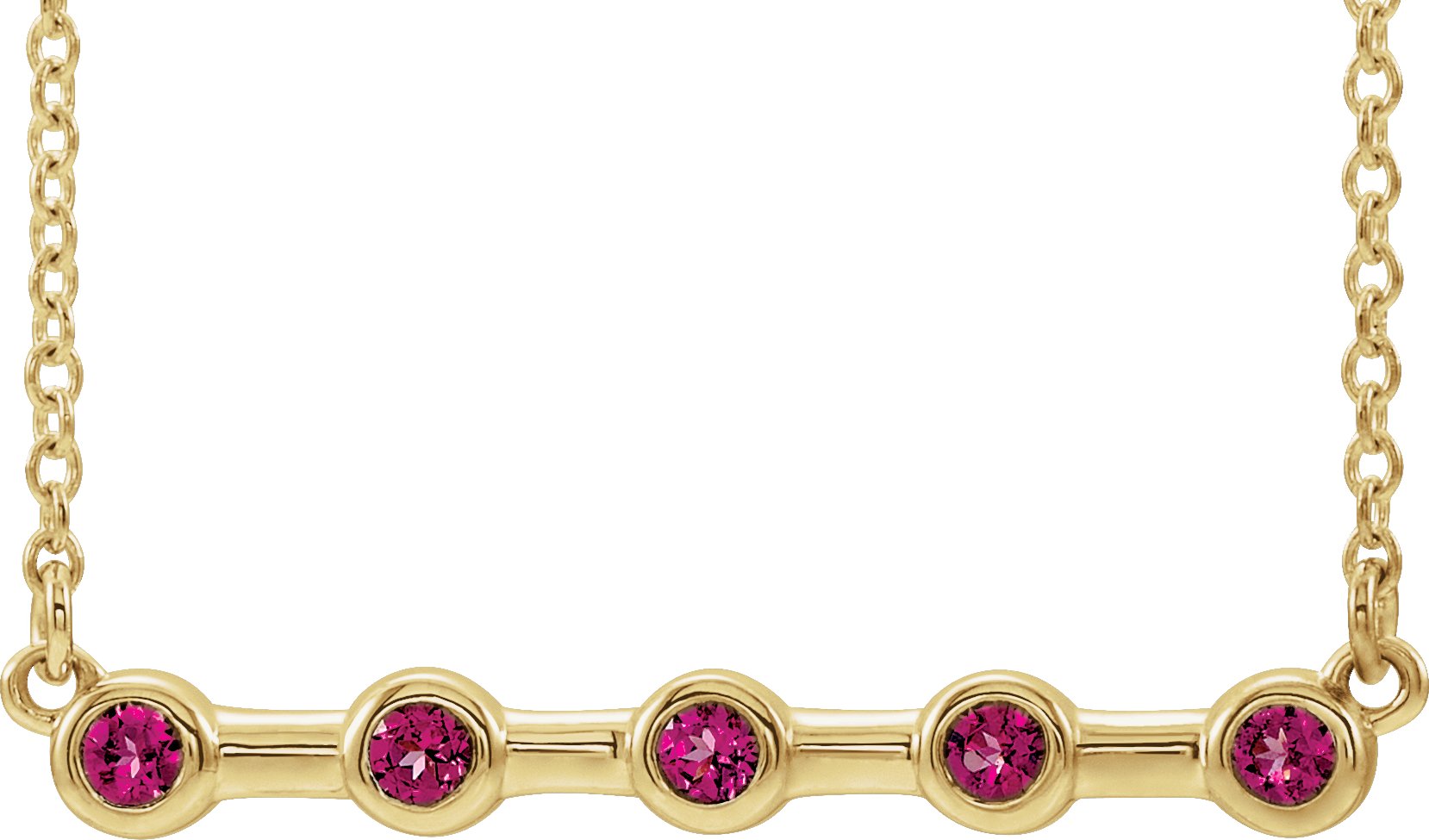 14K Yellow Pink Tourmaline Bezel Set Bar 16 inch Necklace