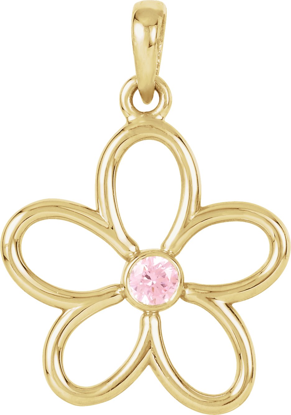14K Yellow Pink Tourmaline Flower 18 inch Necklace