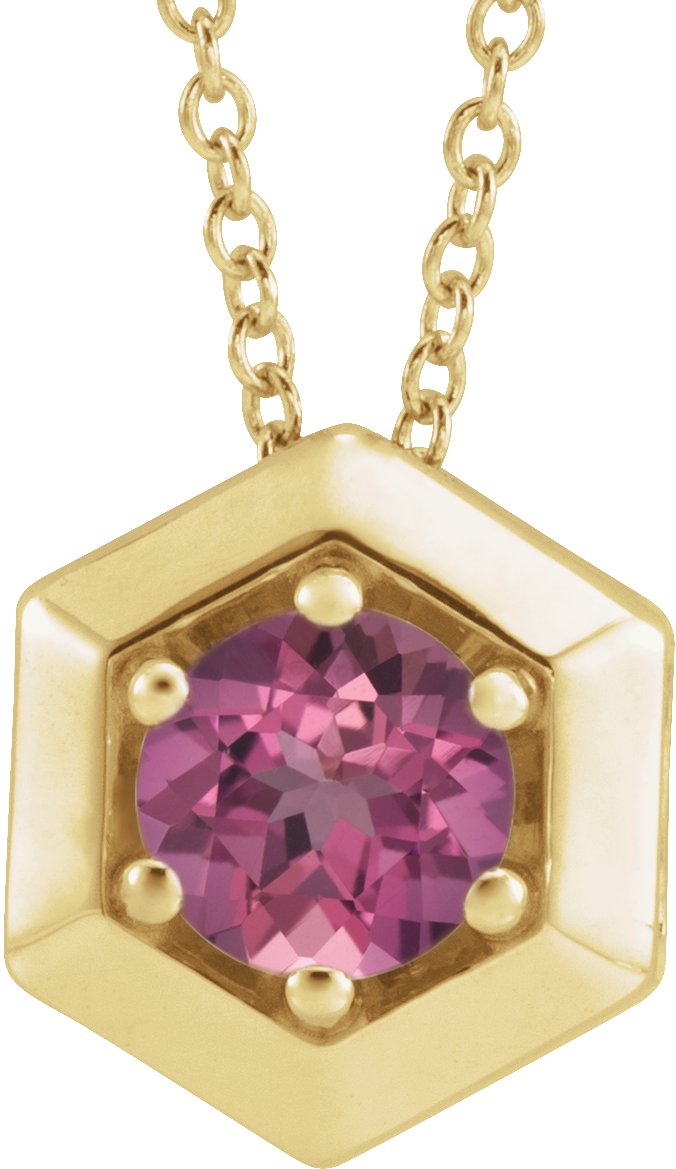 14K Yellow Pink Tourmaline Geometric 16 18" Necklace Ref. 16628921