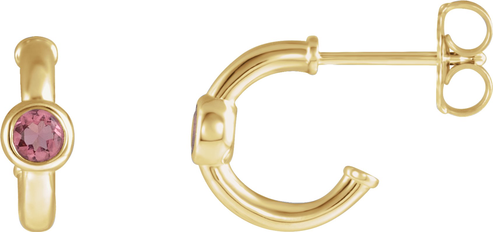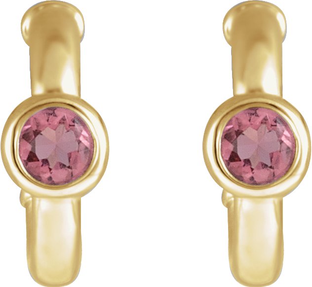 14K Yellow Pink Tourmaline Hoop Earrings